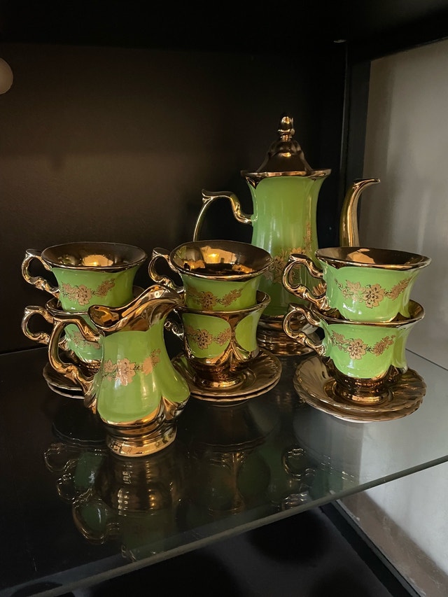 Tea Set green and gold