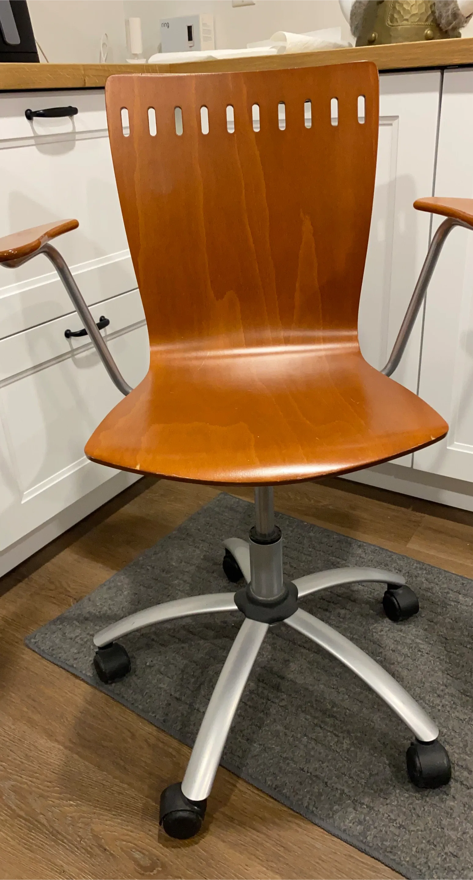 Buy & SellWooden Office Chair with ArmrestsWooden Office Chair with Armrests$26Office chair with wooden seat and back. It has armrests and a rolling base. Good condition!WHERE TO MEETCheck LocationView MapSELLERDonMarkland Wood150 reviews1 chats·3 favorites·44 viewsSEND CHAT TO SELLERHi Don! I’m interested in your listing.Hi Don! I’m interested in your listing.Get the Karrot app to chatSign In to chat