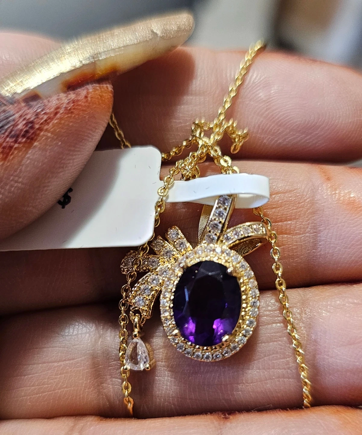 Here's a beautiful nature crystal pendant necklace! It's gold in colour and has a lovely Amethyst crystal as the centrepiece. It would make a lovely gift or addition to your jewellery collection