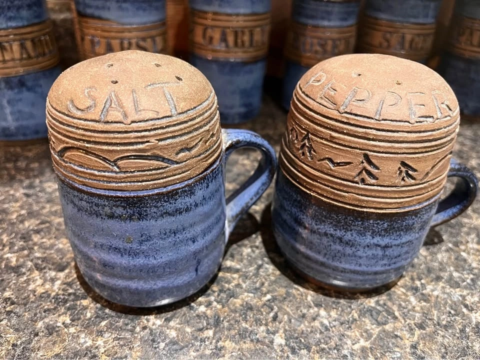 Handmade Blue Glazed Ceramic Spice Jars & Shakers (12 pcs)