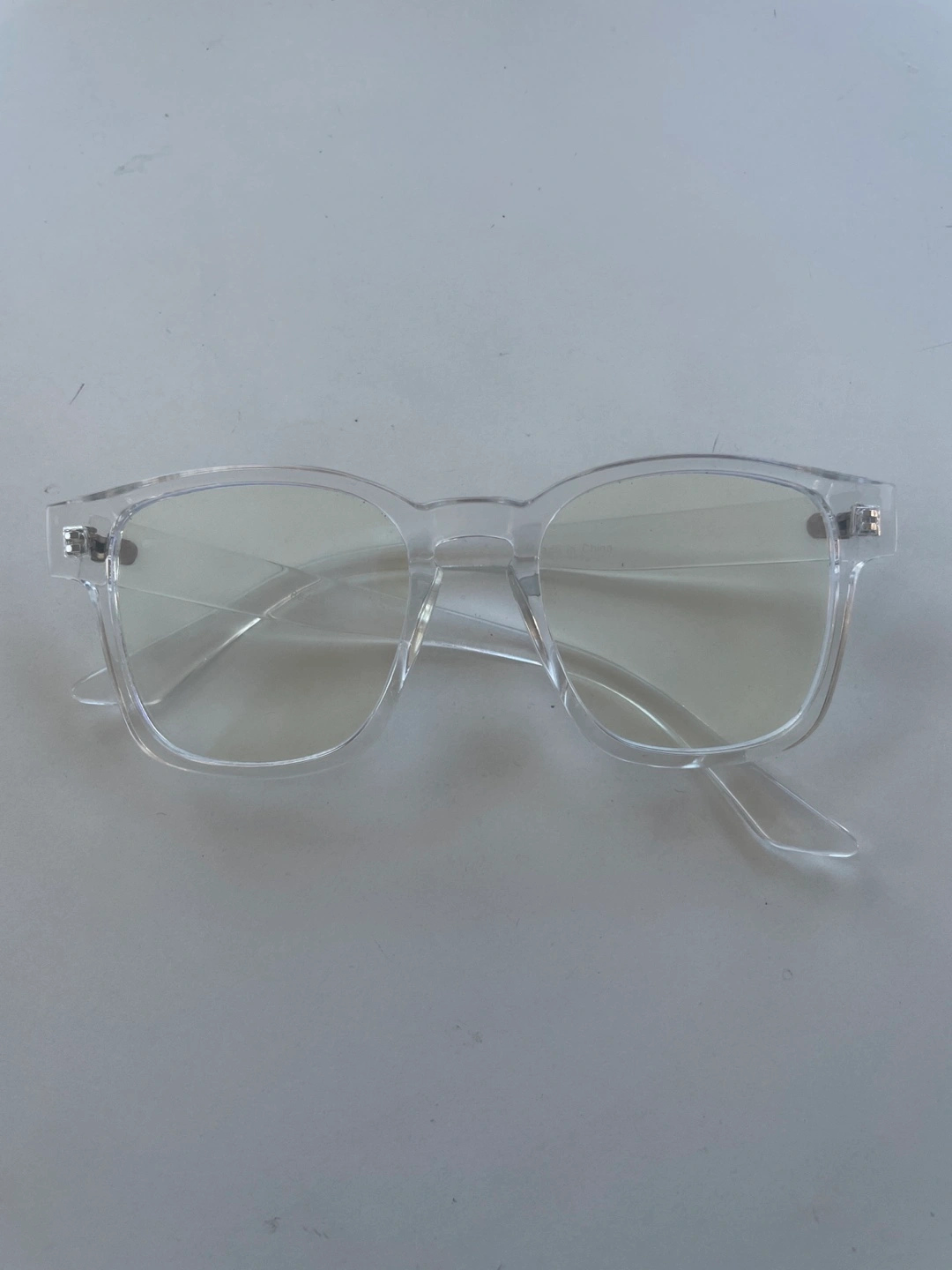 Transparent square-shaped glasses.
