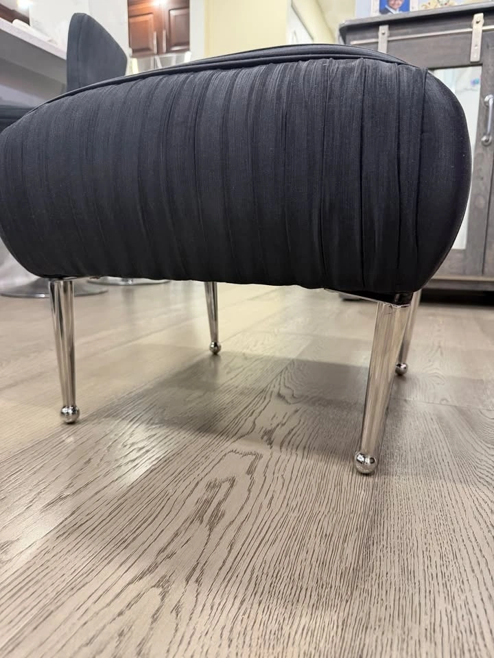 Modern and versatile black fabric ottoman in great condition. Perfect as a footrest, extra seating, or a stylish accent piece for your living room, bedroom, or office.