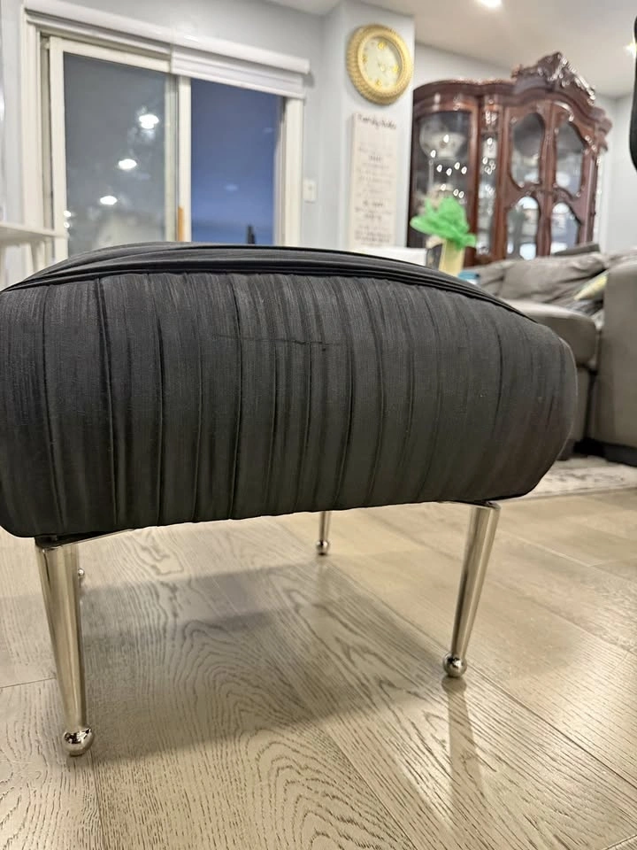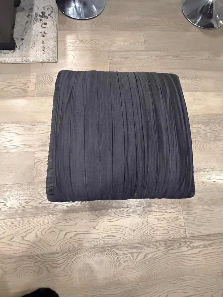 Modern and versatile black fabric ottoman in great condition. Perfect as a footrest, extra seating, or a stylish accent piece for your living room, bedroom, or office.