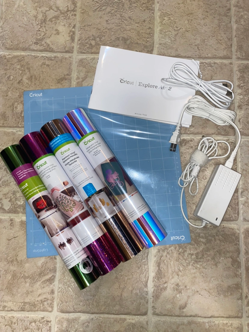 Cricut Explore Air 2. Never been used, only taken out of box. Comes with 4 vinyl rolls, Lightgrip place mat, plugs for machine, and welcome book manual. Open to offers.