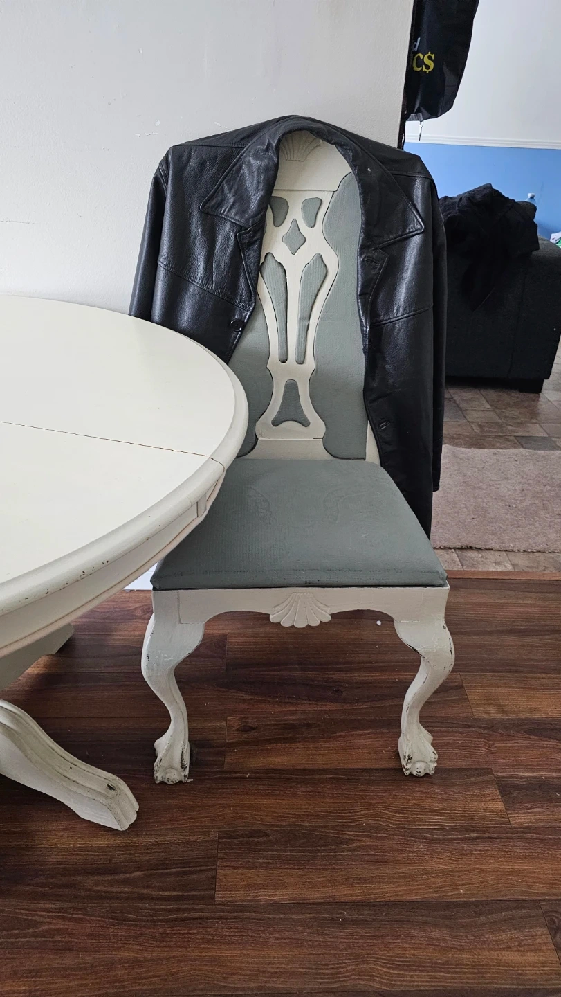 This is a charming white round pedestal dining table. It features a classic design with a sturdy pedestal base. It's well-suited for small to medium dining areas or breakfast nooks. It comes with four chairs