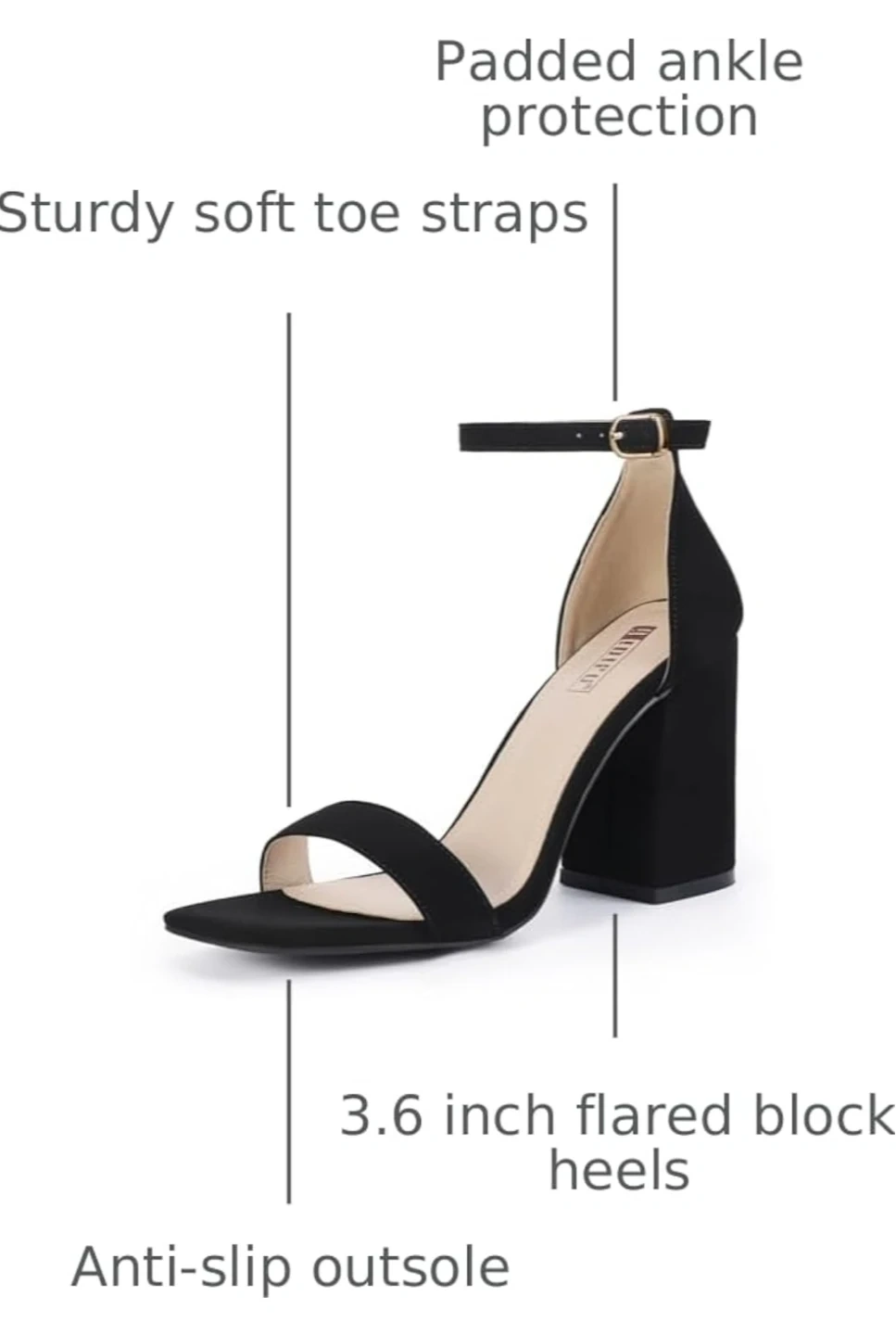 • Approx. 3.6" high flared block heel for stability and modern style
