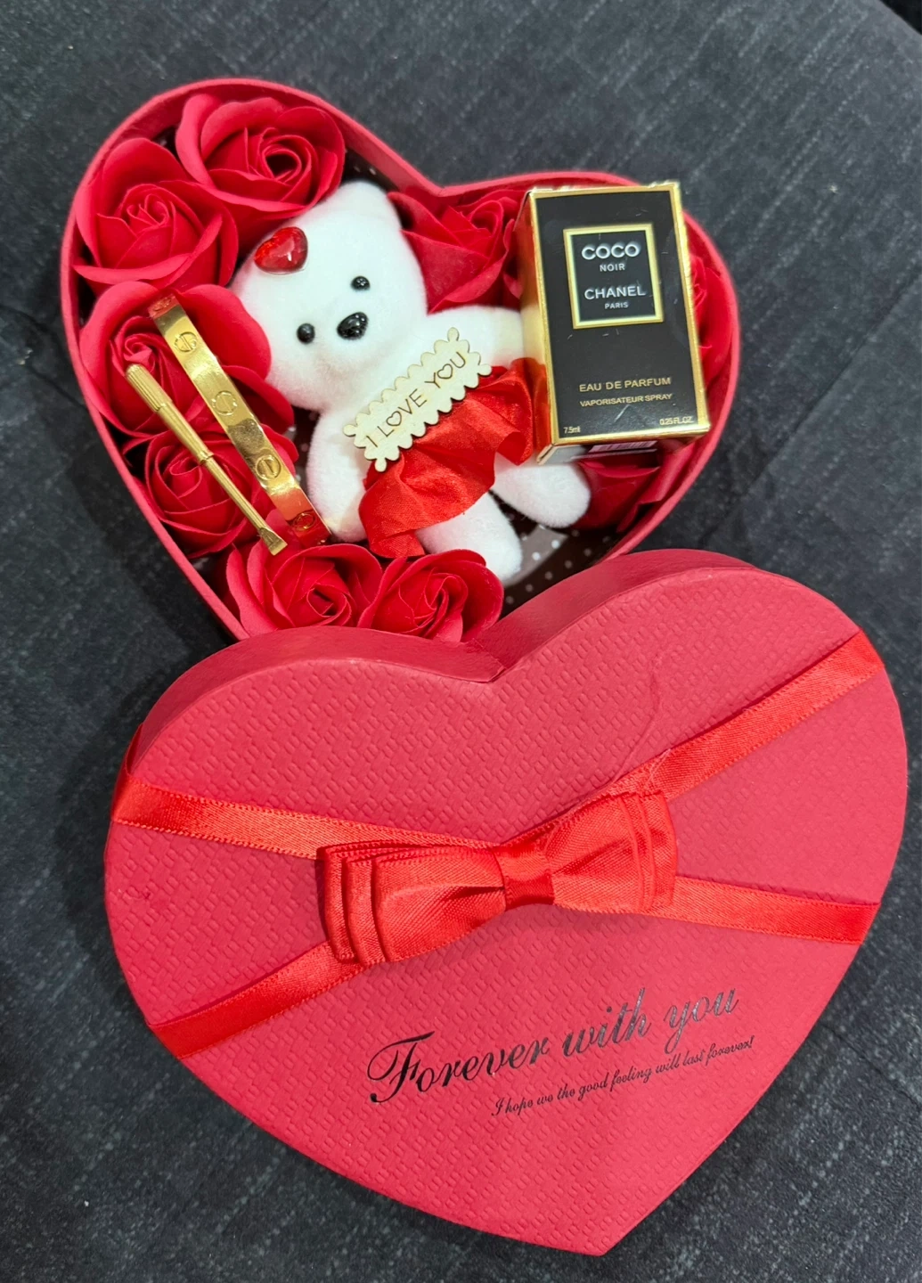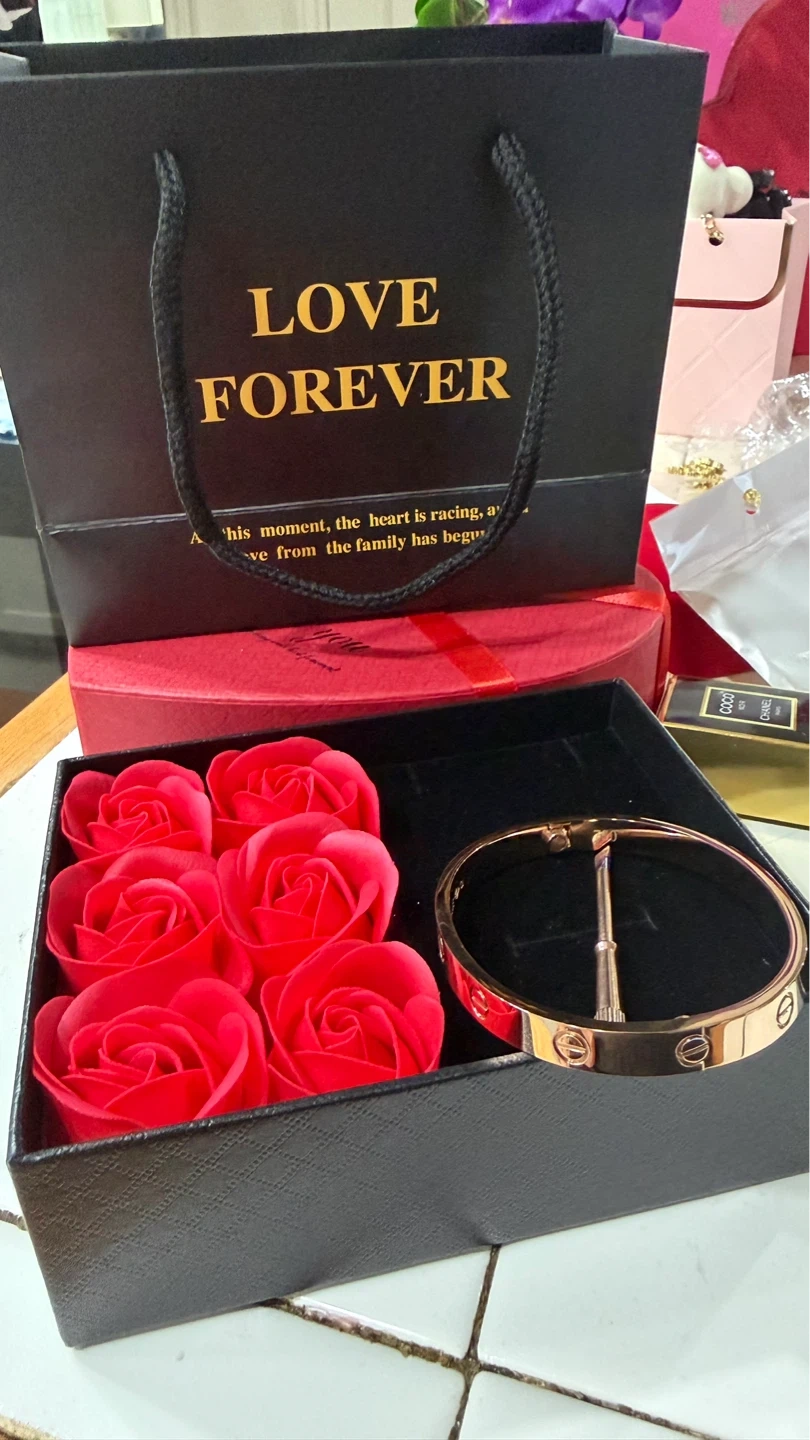 This gift set includes Cartier bracelet for her nd any 1 mini perfume. It comes in a cute gift packaging Perfect to give to your loved ones or on anniversaries!!