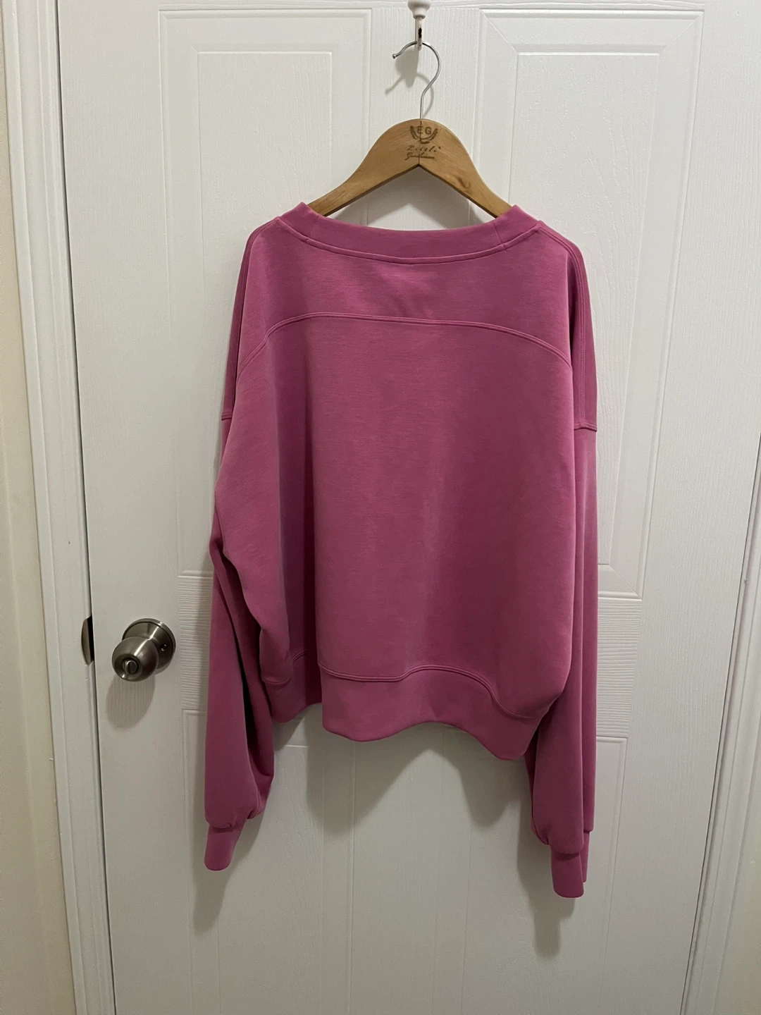 Softstreme Lululemon perfectly oversized crew neck sweatshirt in a lovely pink hue. Touchable soft fabric, perfect for casual wear. This pullover has a relaxed fit.