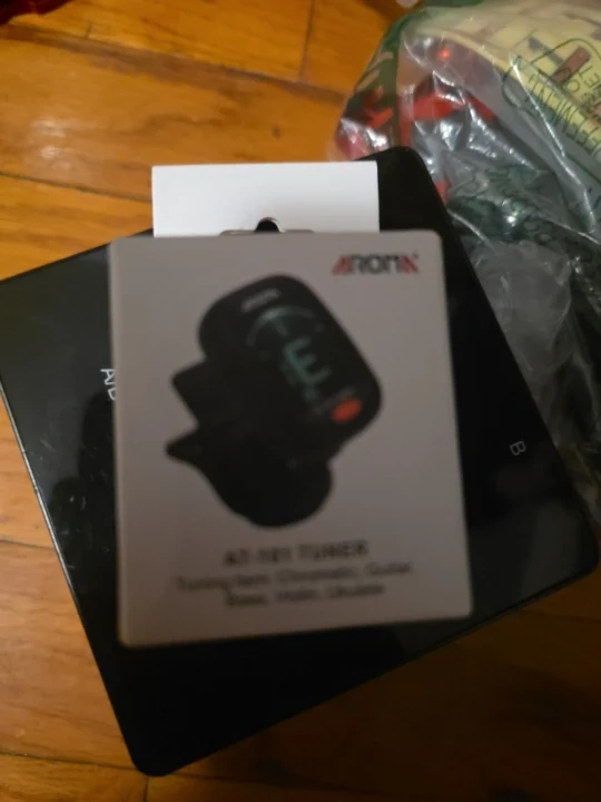 Set of Wilkinson electric & acoustic guitar tuning pegs. Includes a compact Aroma AT-N01 tuner for chromatic, guitar, bass, violin, and ukulele. Both items are new and in original packaging.