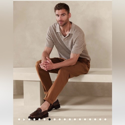 Brand new with tags MSRP $130 USD. The first six pictures are of the actual pants. The rest are for you to see the fit. Tailored. Performance. Rapid Movement Chinos are built for everyday, designed to do more thanks to a high-stretch fabric that looks sophisticated, resist wrinkles, and is equally sturdy and soft. High-Stretch, Wrinkle-Resistant. Athletic Tapered Fit: Designed for those who like more room through the seat and thigh. Mid rise, tapered leg. 13.5" leg opening. In-Conversion Cotton: Banana Republic has made a commitment to source in-conversion and organic cotton from a co-op of 1,500 farmers in India's Madhya Pradesh. As part of this initiative, we are working with Arvind Limited to fund the training of farmers in converting to organic practices—a process that can take up to 36 months. Zip fly with button closure Belt loops Front and back pockets Material: 90% cotton, 8% elasterrell, 2% spandex Excellent condition comes from a pet free smoke free home