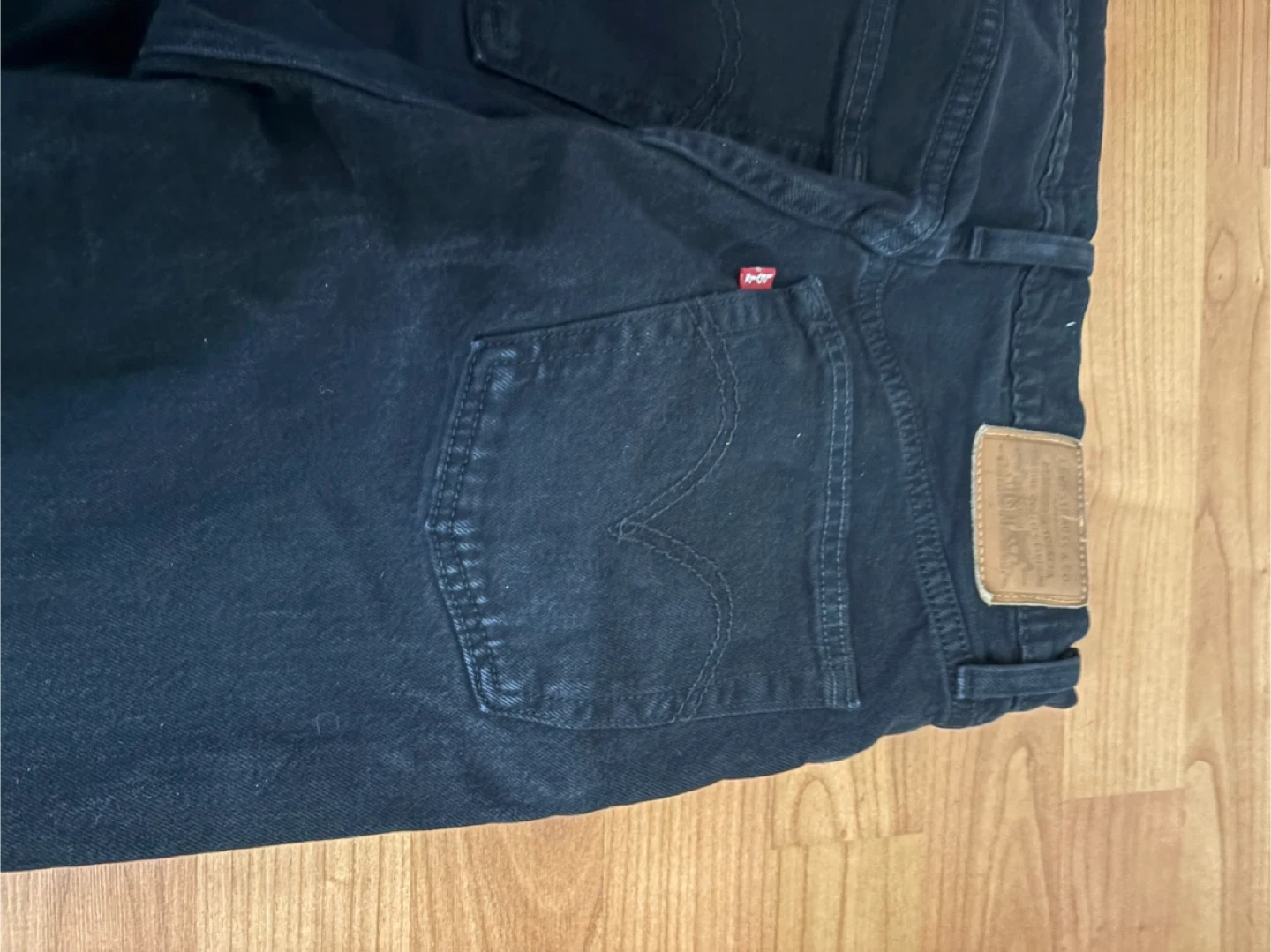 These are black Levi's Ribcage Straight Ankle jeans. They're a size 27 in good condition, well-loved only a bit lighter on one pocket (included in picture).