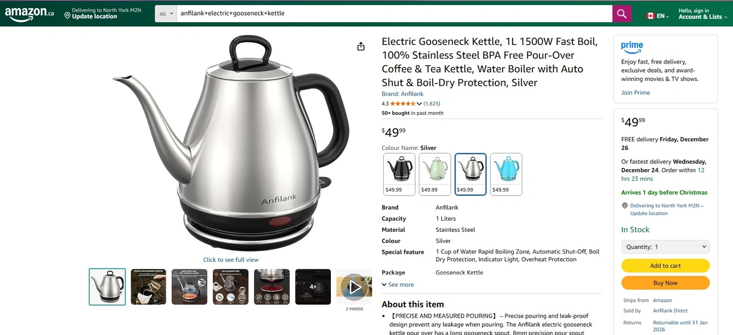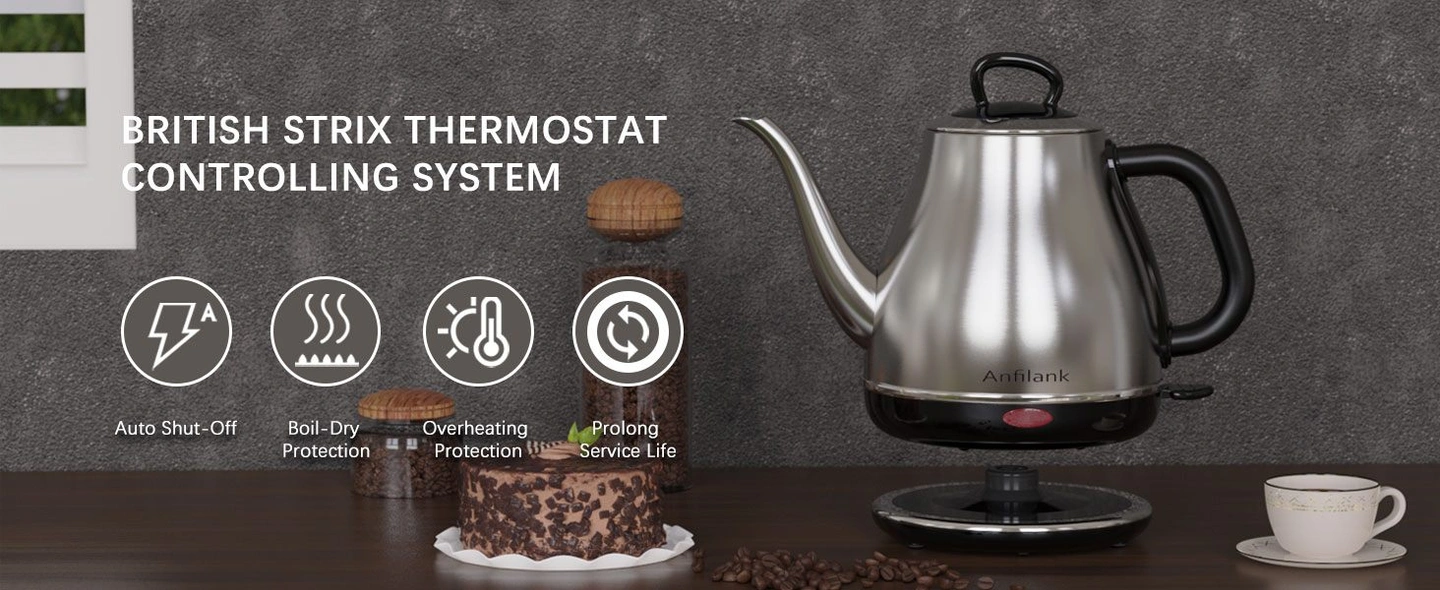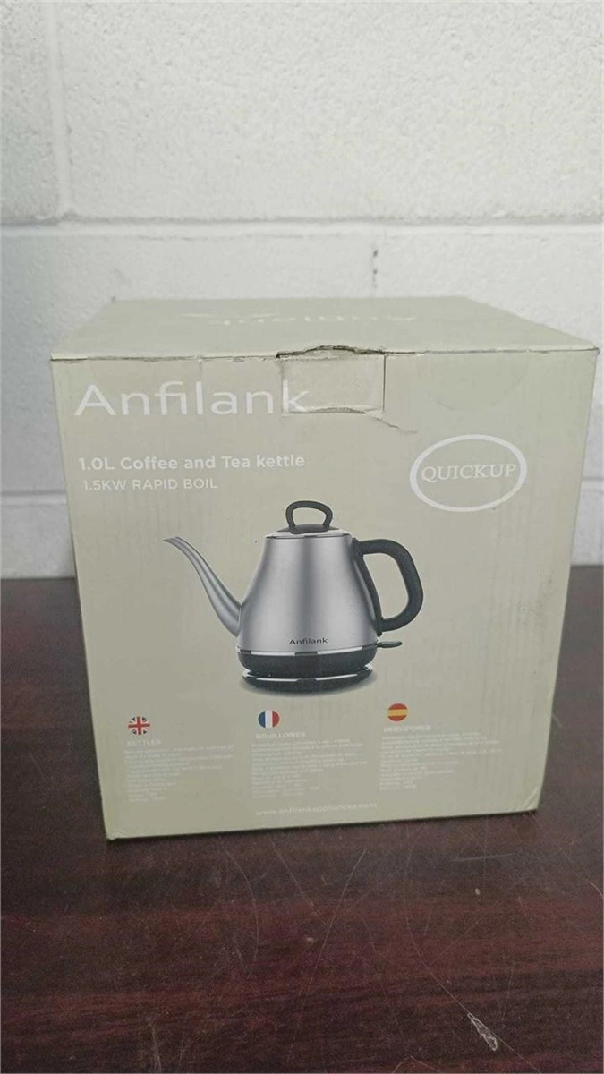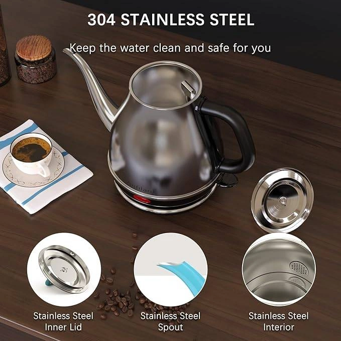 Description: Electric Gooseneck Kettle, 1L 1500W Fast Boil, 100% Stainless Steel BPA Free Pour-Over Coffee & Tea Kettle, Water Boiler with Auto Shut & Boil-Dry Protection, Silver