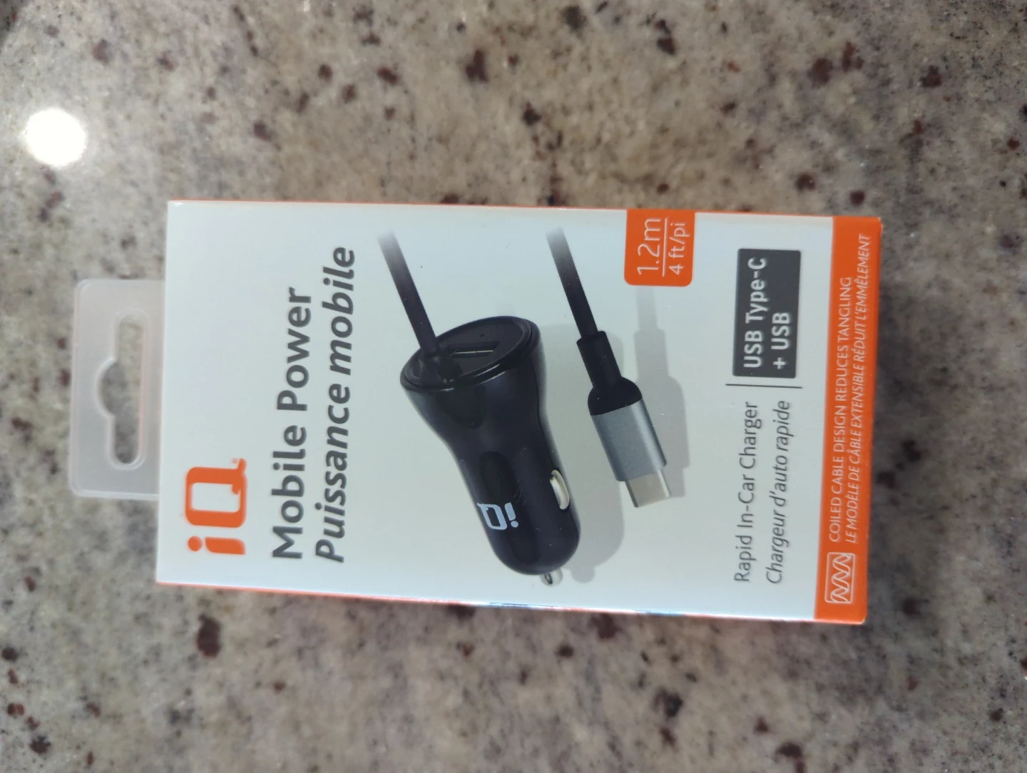 Selling an iQ Mobile Power Rapid In-Car Charger! It comes with a USB Type-C + USB port. The coiled cable design reduces tangling, which is super handy. It's brand new in the box and ready to go!