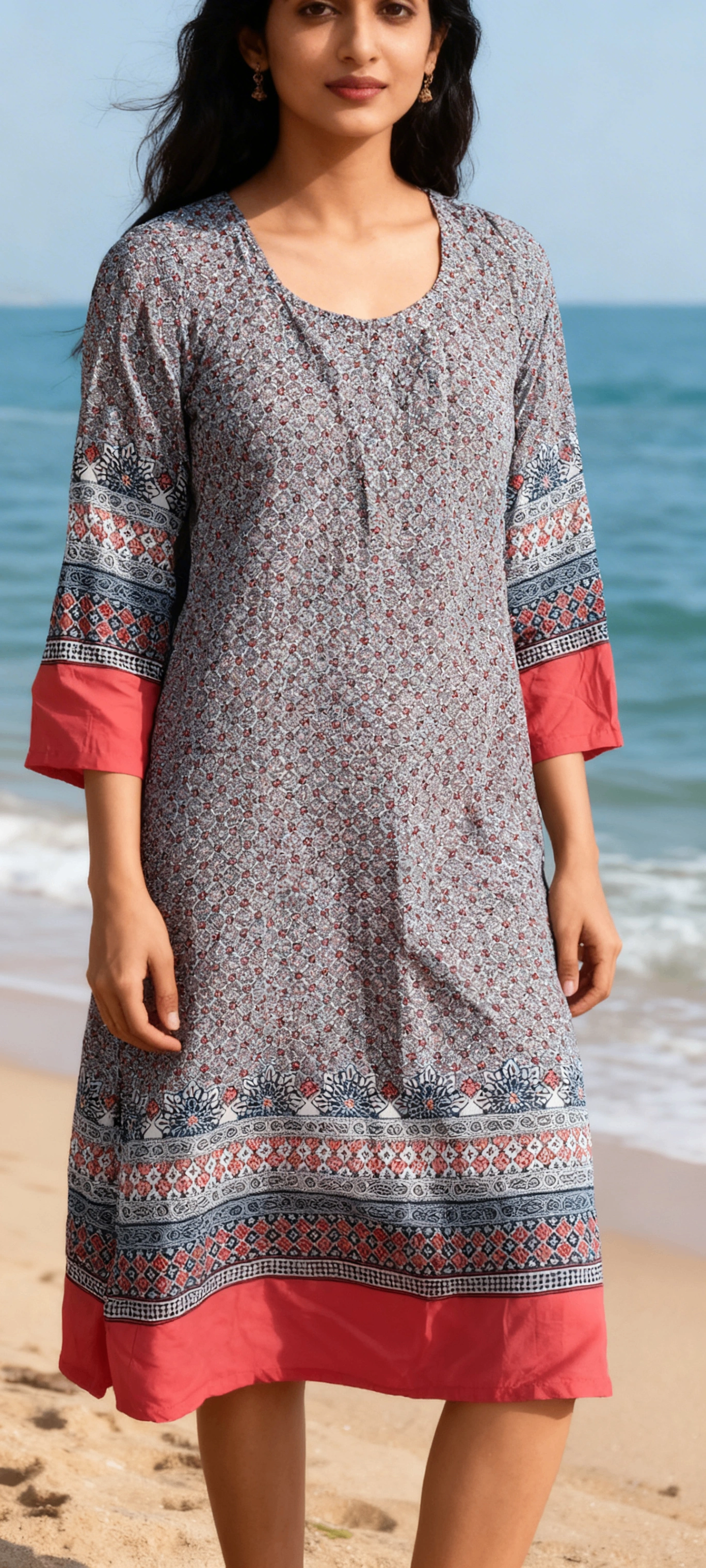 Perfect for hot summer days! The cotton-silk blend is cool and comfortable, and the Indian print is eye-catching and unique.