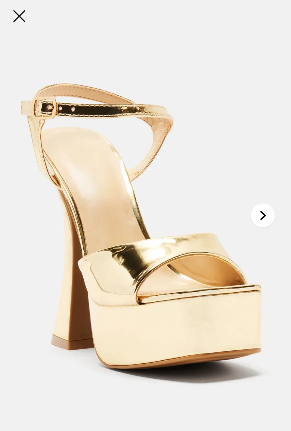 Fashion Nova Gold Platform Heels, Size 7.5