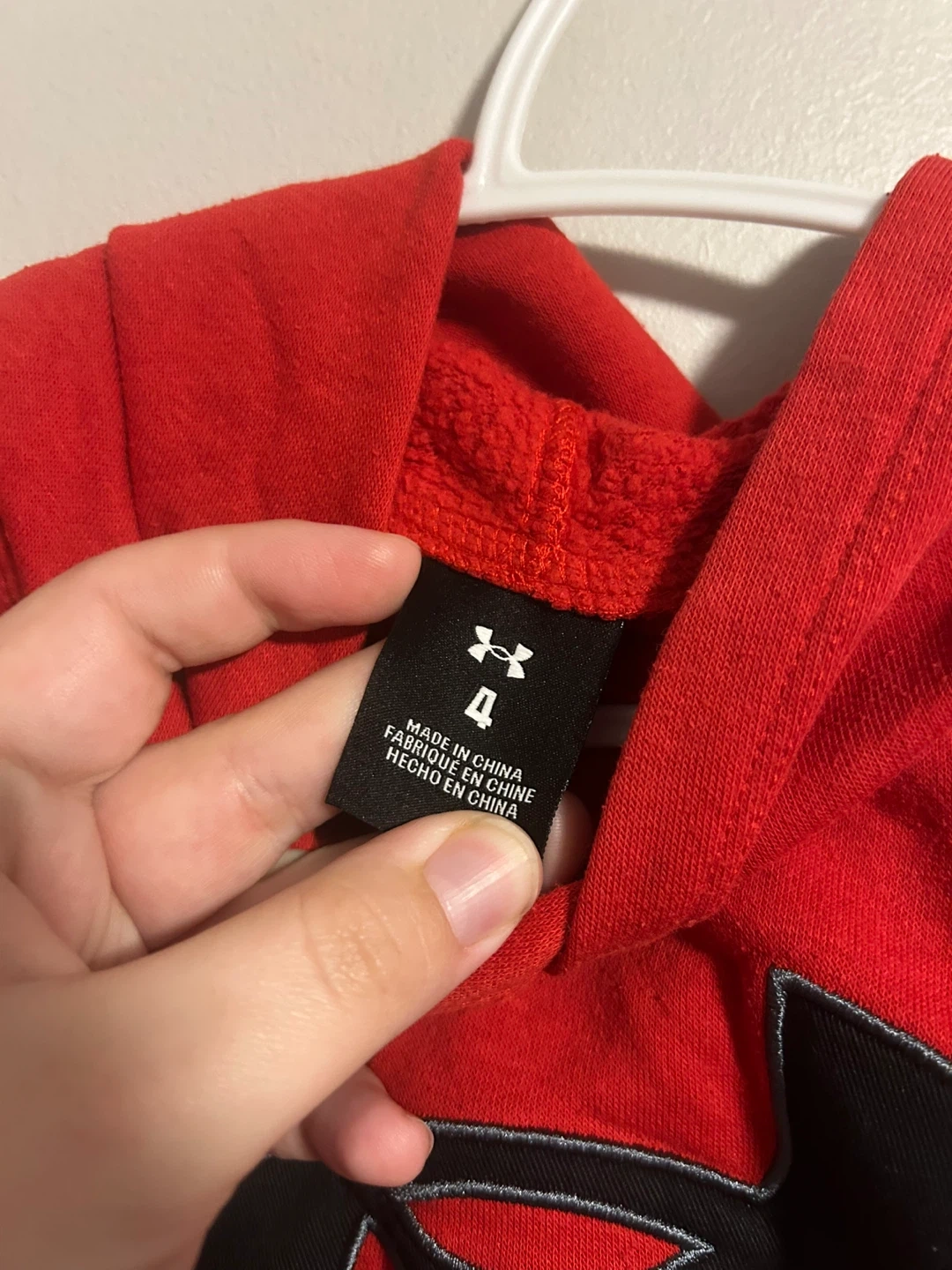 Under armour brand. Pullover hoodie sweater. Red with black logo. Size toddler 4. Brand new condition