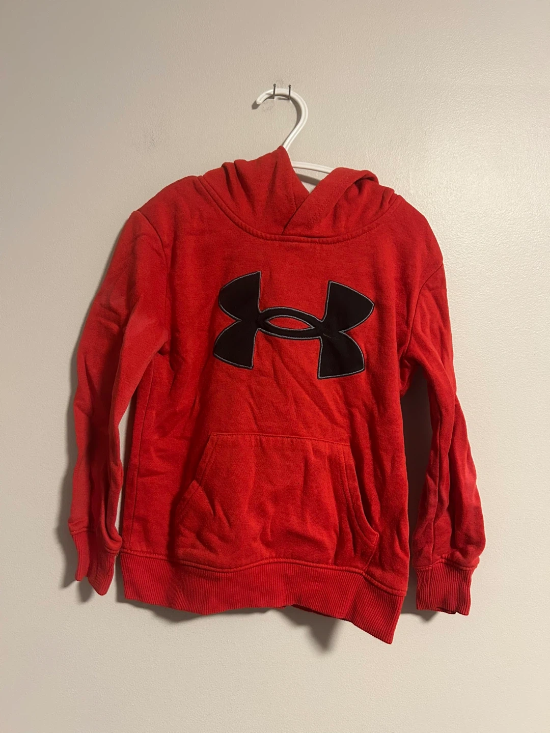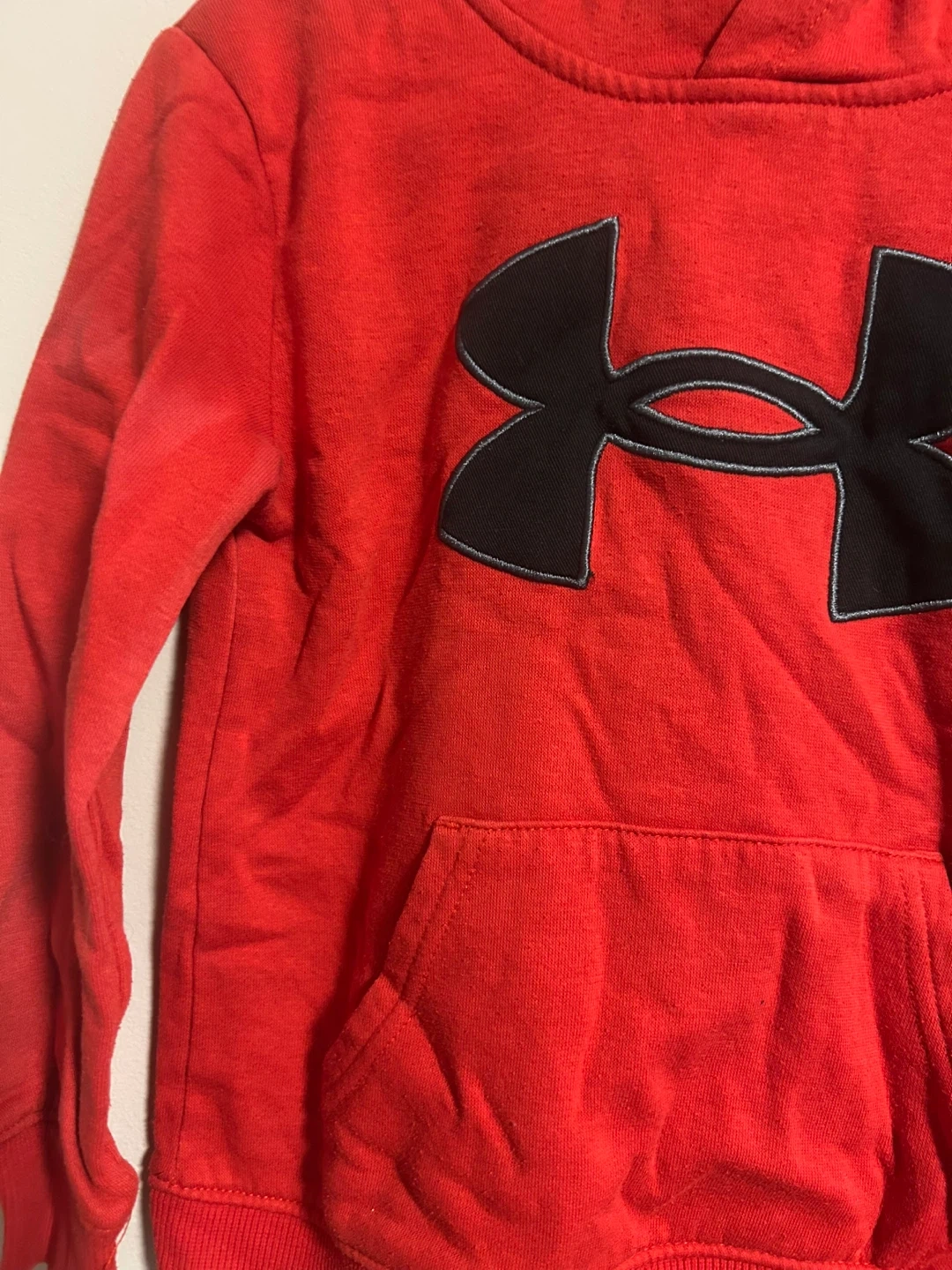 Under armour brand. Pullover hoodie sweater. Red with black logo. Size toddler 4. Brand new condition