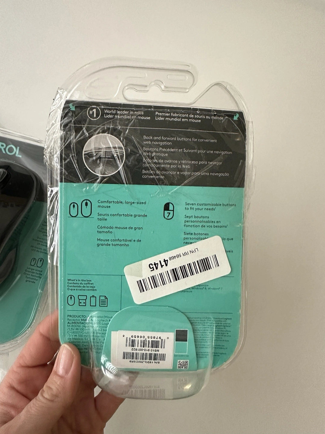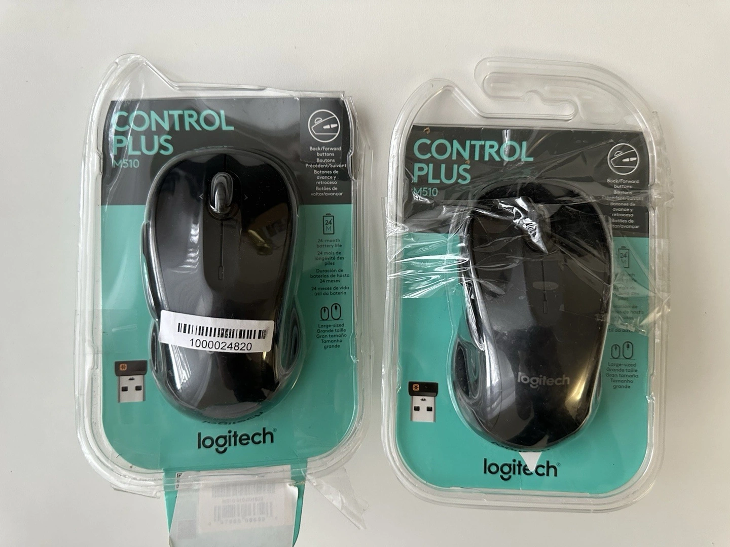 Open box. Color: Black. Tracking Method: Optical. Number of Buttons: 7. Brand: Logitech. Type: Standard Mouse. Model: Control Plus M510. Connectivity: Wireless, USB. Features: Back/Forward Buttons, Large-sized, Seven customizable buttons.