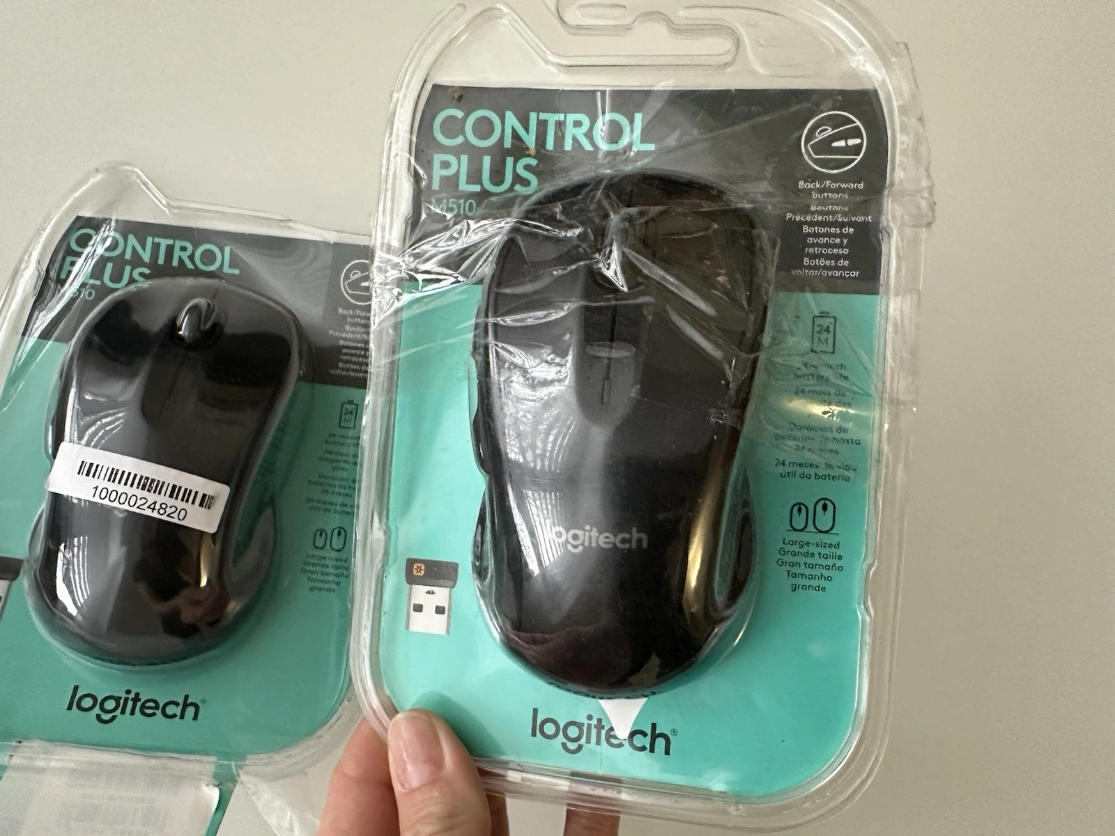 Open box. Color: Black. Tracking Method: Optical. Number of Buttons: 7. Brand: Logitech. Type: Standard Mouse. Model: Control Plus M510. Connectivity: Wireless, USB. Features: Back/Forward Buttons, Large-sized, Seven customizable buttons.