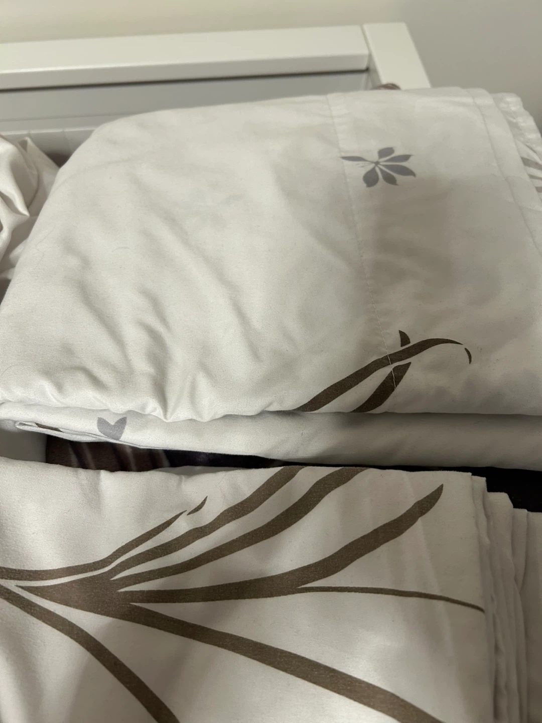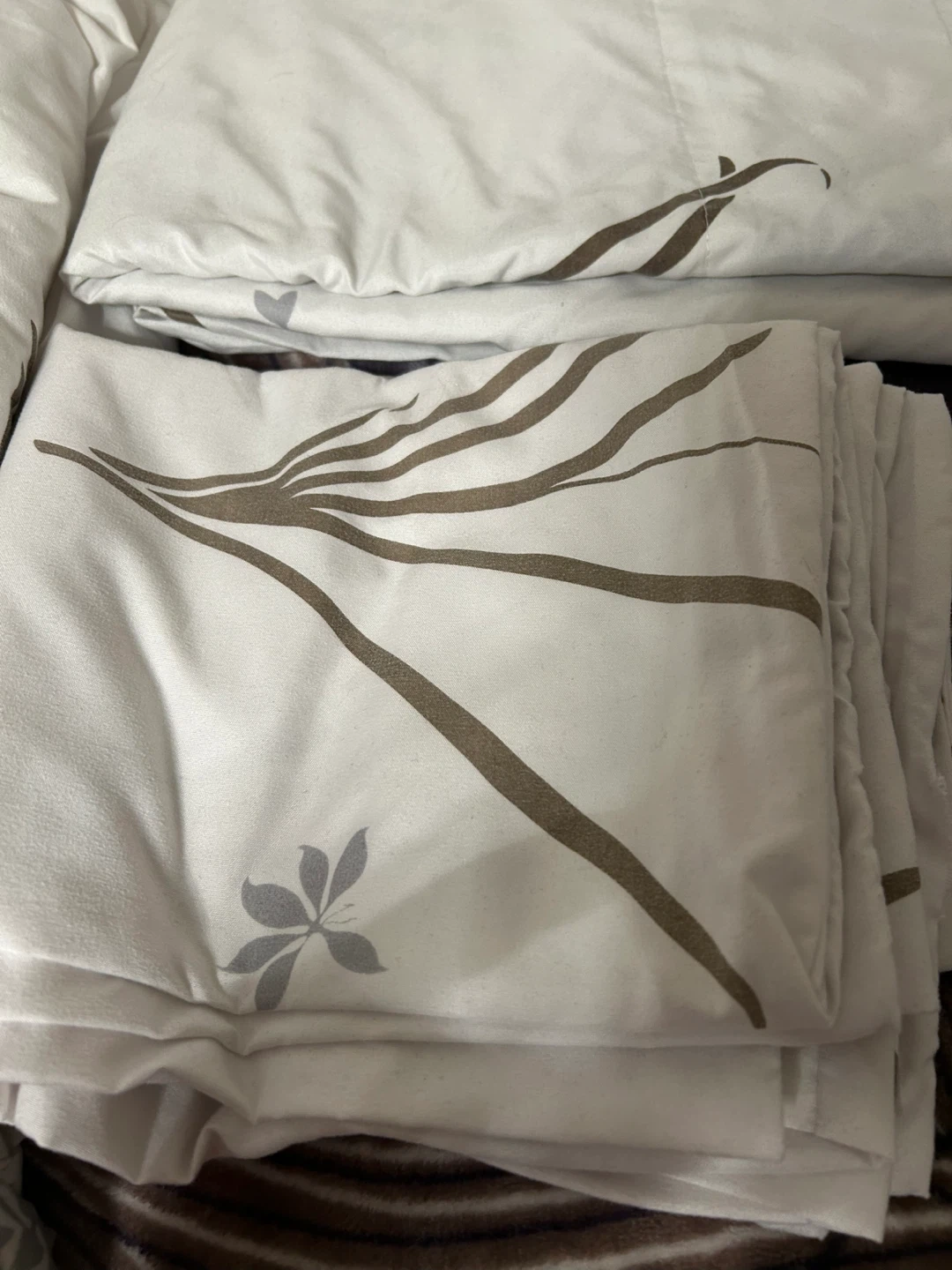 Queen size bedding set. It's made of soft fabric for a comfortable feel. Includes one fitted sheet, flat sheet and 2 pillow covers.