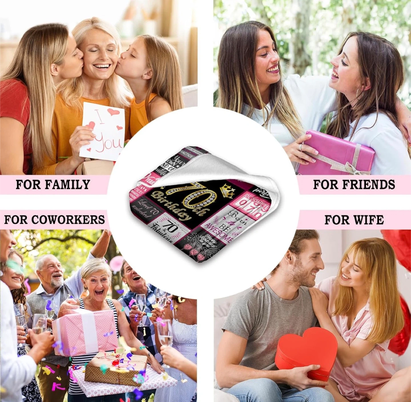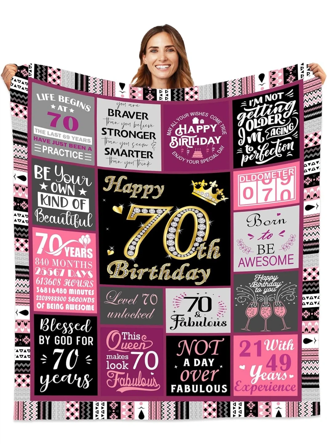 Celebrate a 70th birthday with this soft and cozy blanket. It features fun sayings and designs celebrating the special milestone. Made with a comfortable material for everyday use.