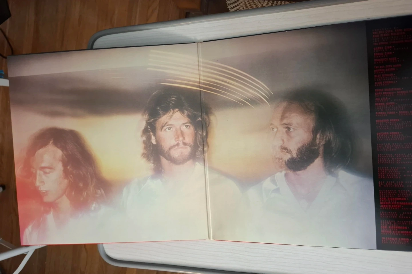 This is the Bee Gees 'Spirits Having Flown' vinyl record. It features the original album art and tracklist. The record is in excellent condition and ready for playback.