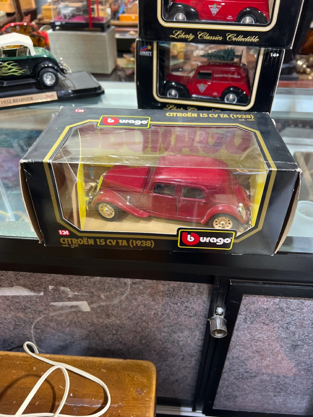 This is a Burago 1:24 scale model of the 1938 Citroën 15 CV TA. It's a die-cast metal car. Includes original box and packaging.