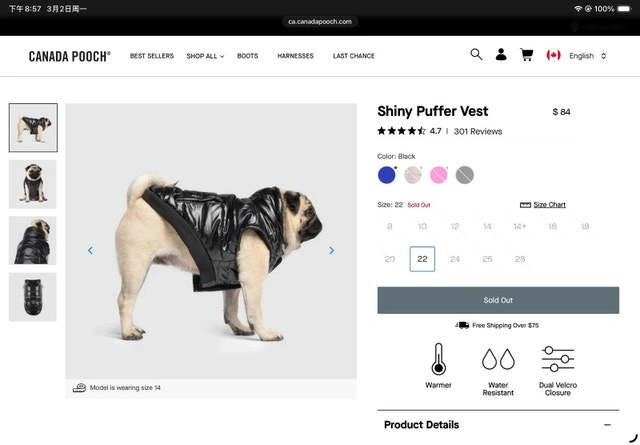 Canada Pooch Shiny Puffer Vest all new, size 22