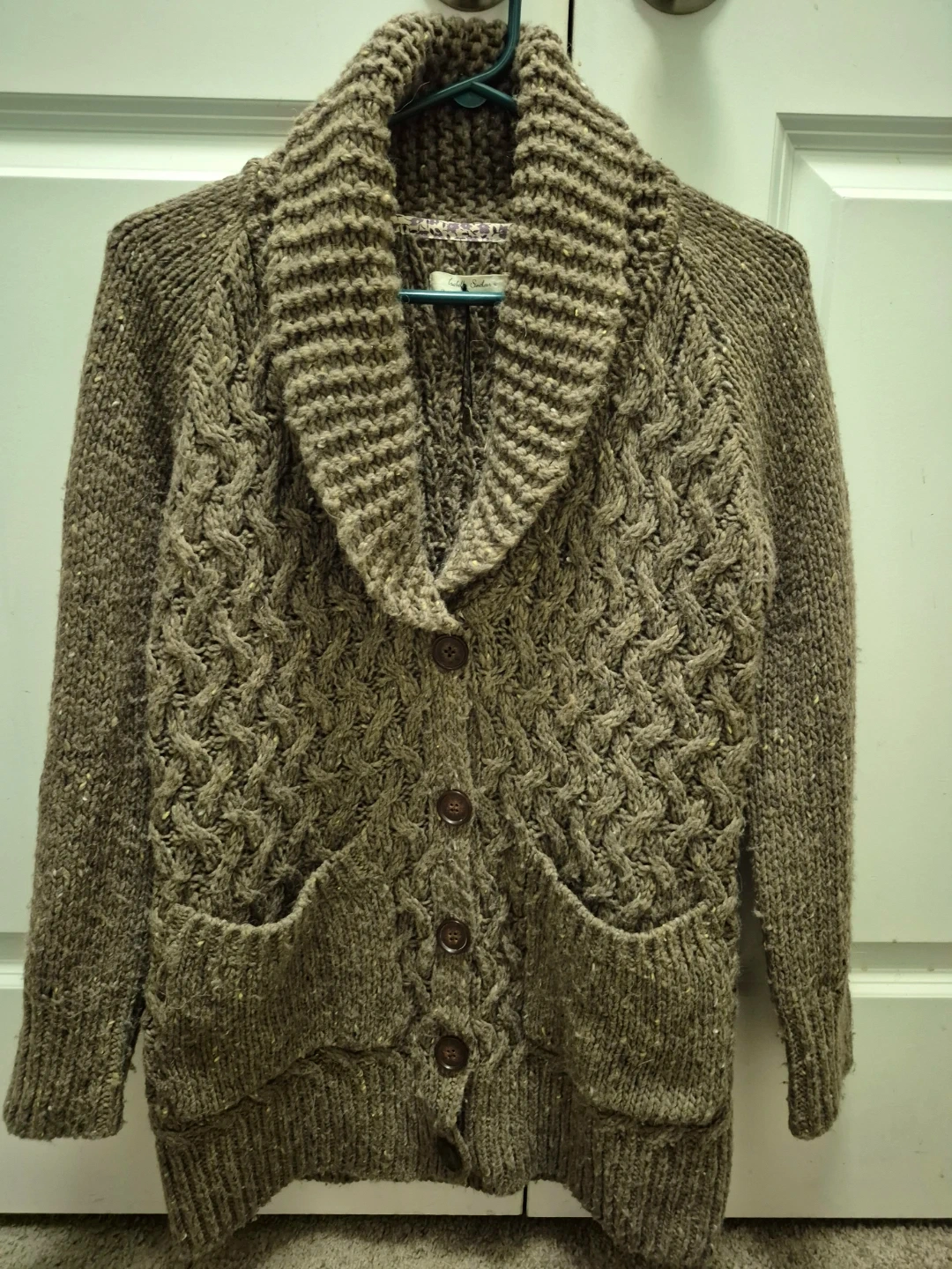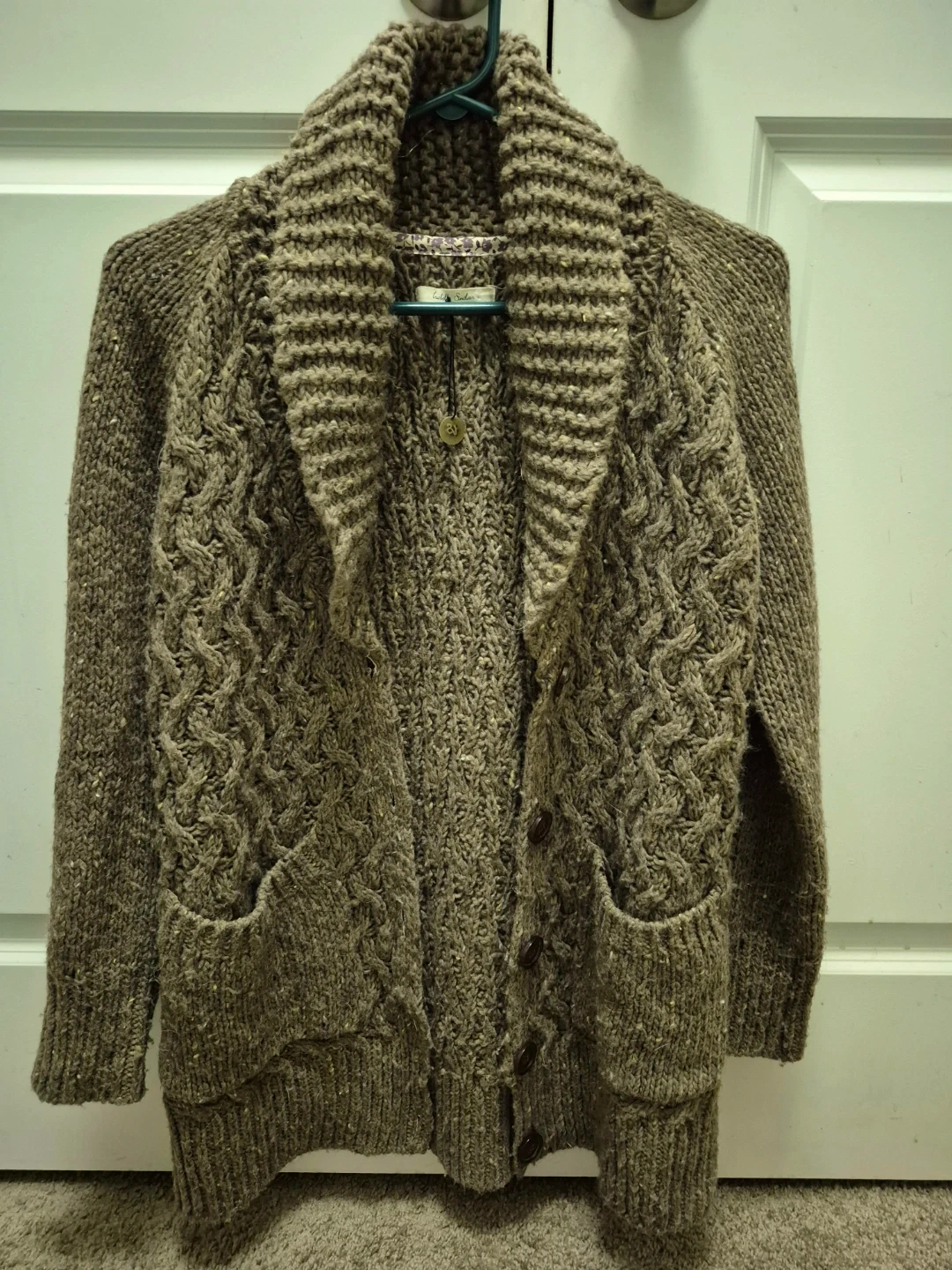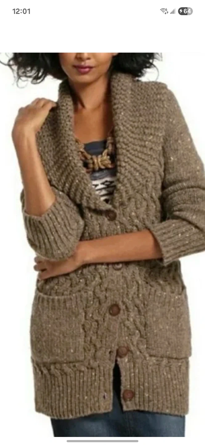 Cozy Anthropologie cardigan in a lovely brown knit! It features a shawl collar, button-down closure, and handy pockets. Perfect for layering on chilly days! It has been gently worn. Asking $15. Pick-up location 333 Taralake Way NE.