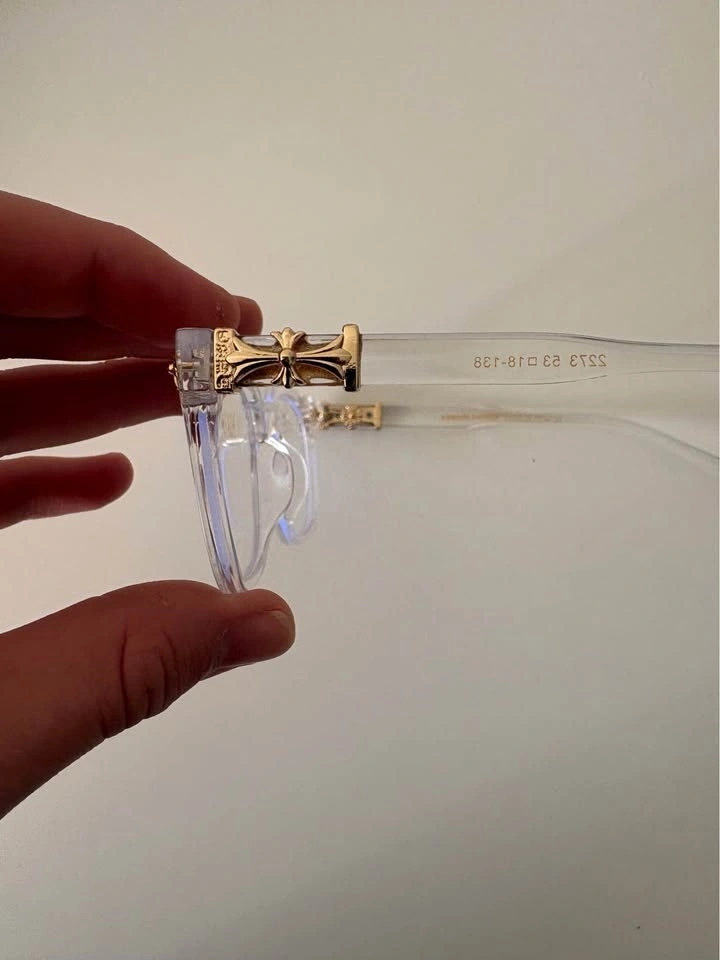 Clear and gold Chrome Hearts glasses. Brand new, never worn. Blue light blocking. Includes glasses and protective bag. High-quality material and frames with accurate logos and tags. Pick up in Kanata Stittsville, near Walmart Fernbank.
