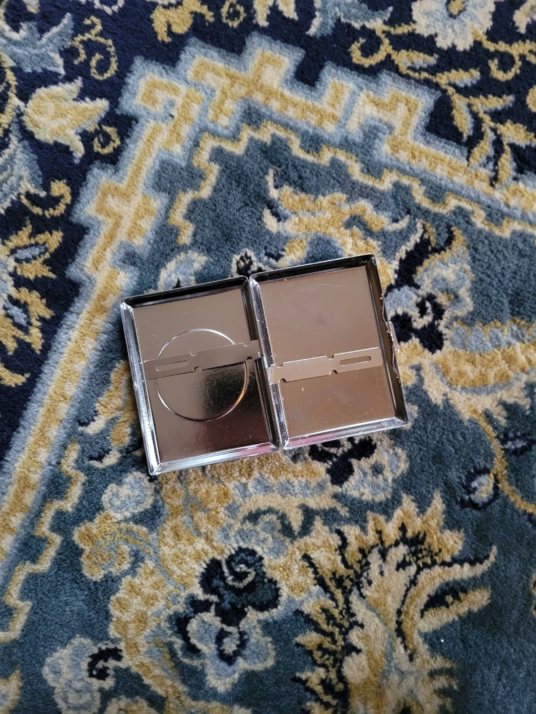 Art Deco style cigarette case, adorned with a celestial design featuring moons, stars, and suns!
