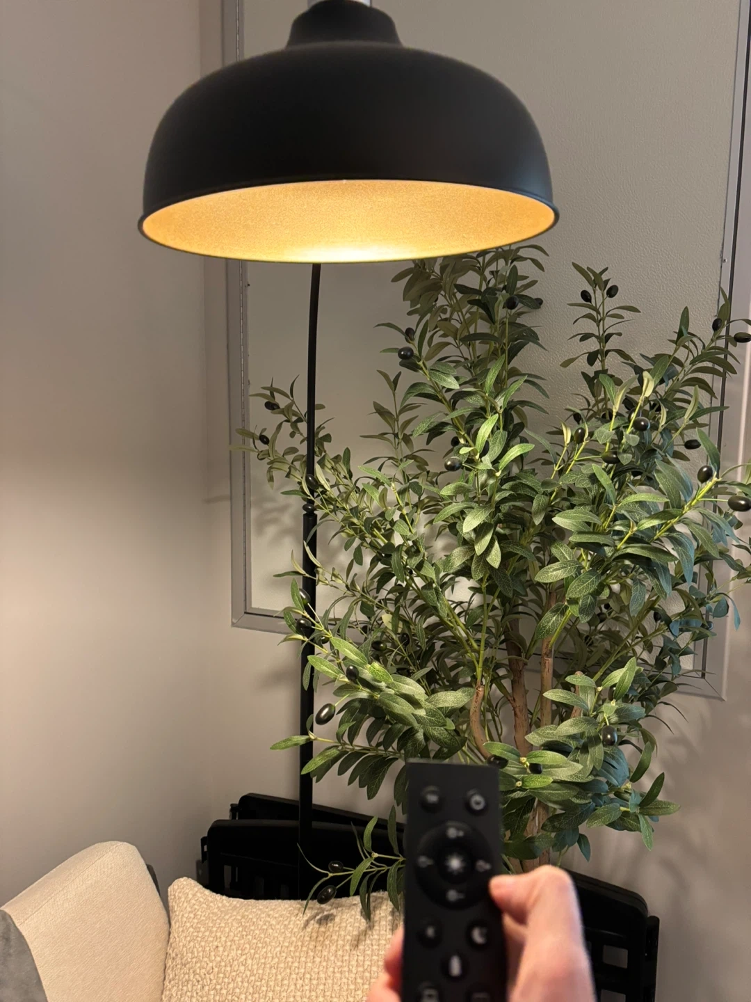 This black metal arc floor lamp offers adjustable brightness and color temperature control via its included remote. The dome-shaped shade directs light downwards. It's great for providing targeted lighting in a living room or reading nook.