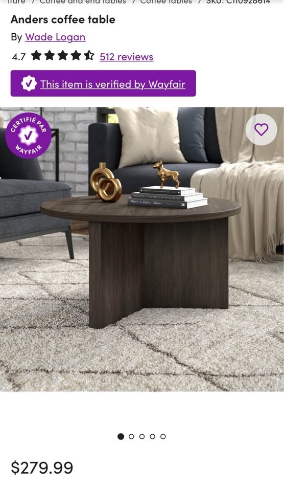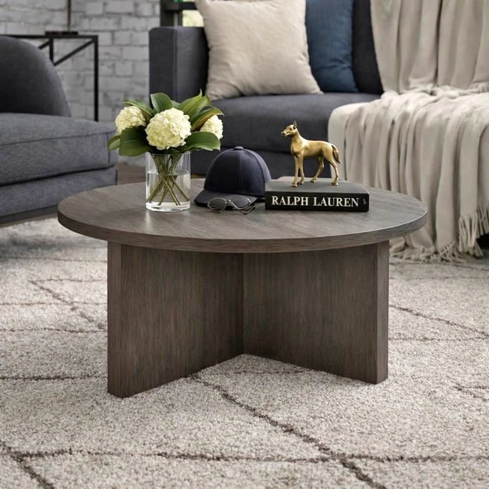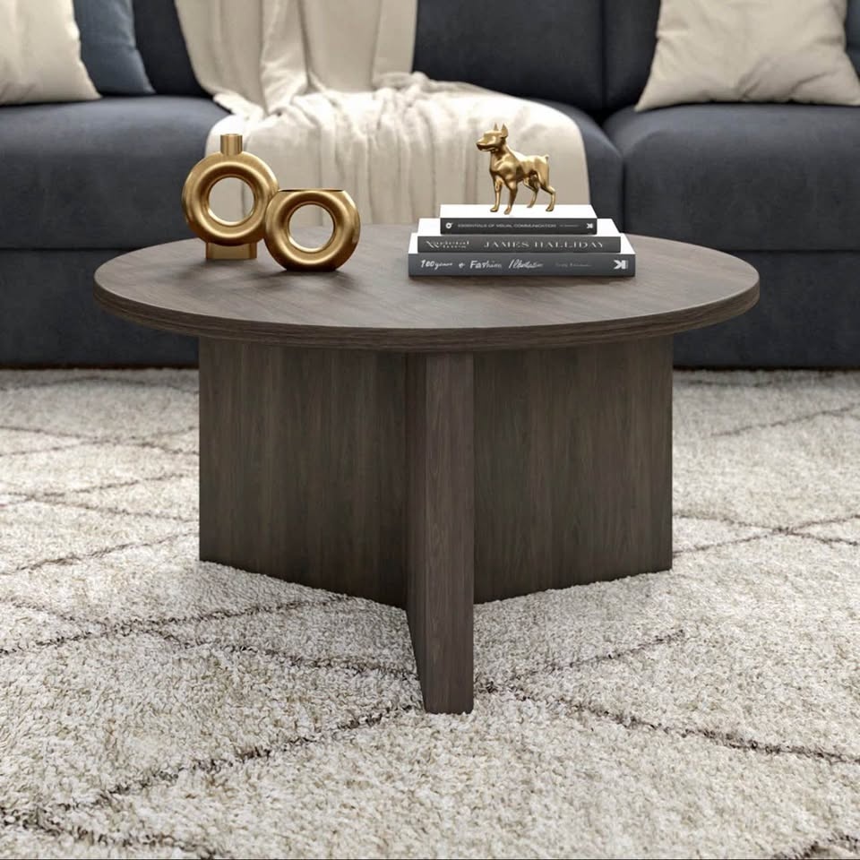 Modern, solid and timeless round coffee table with a sculptural base. Perfect for condos, apartments, or cozy living rooms. Brand new.