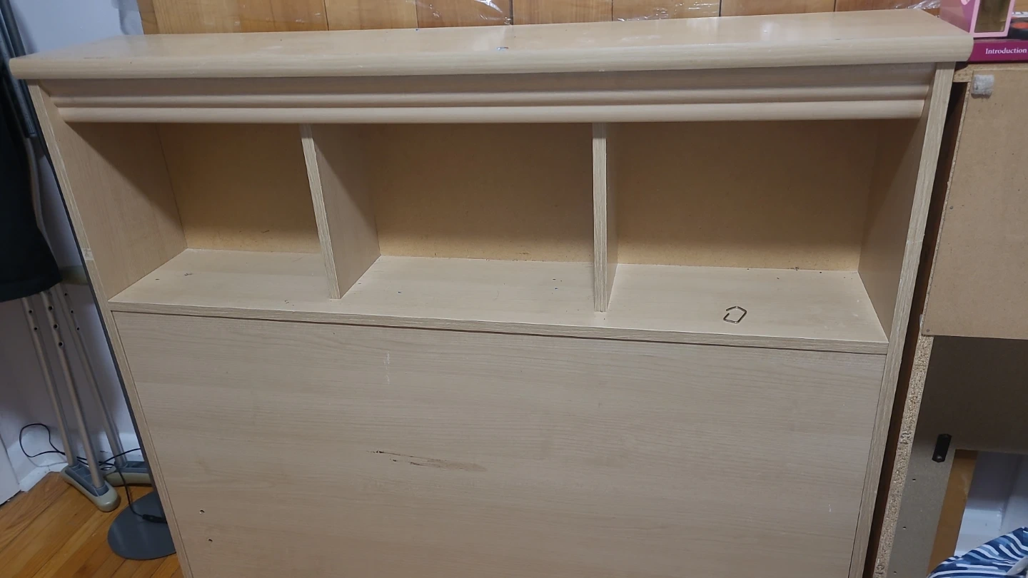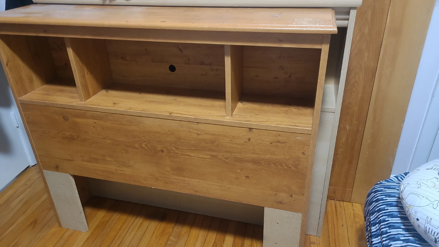 Wooden headboard with shelves