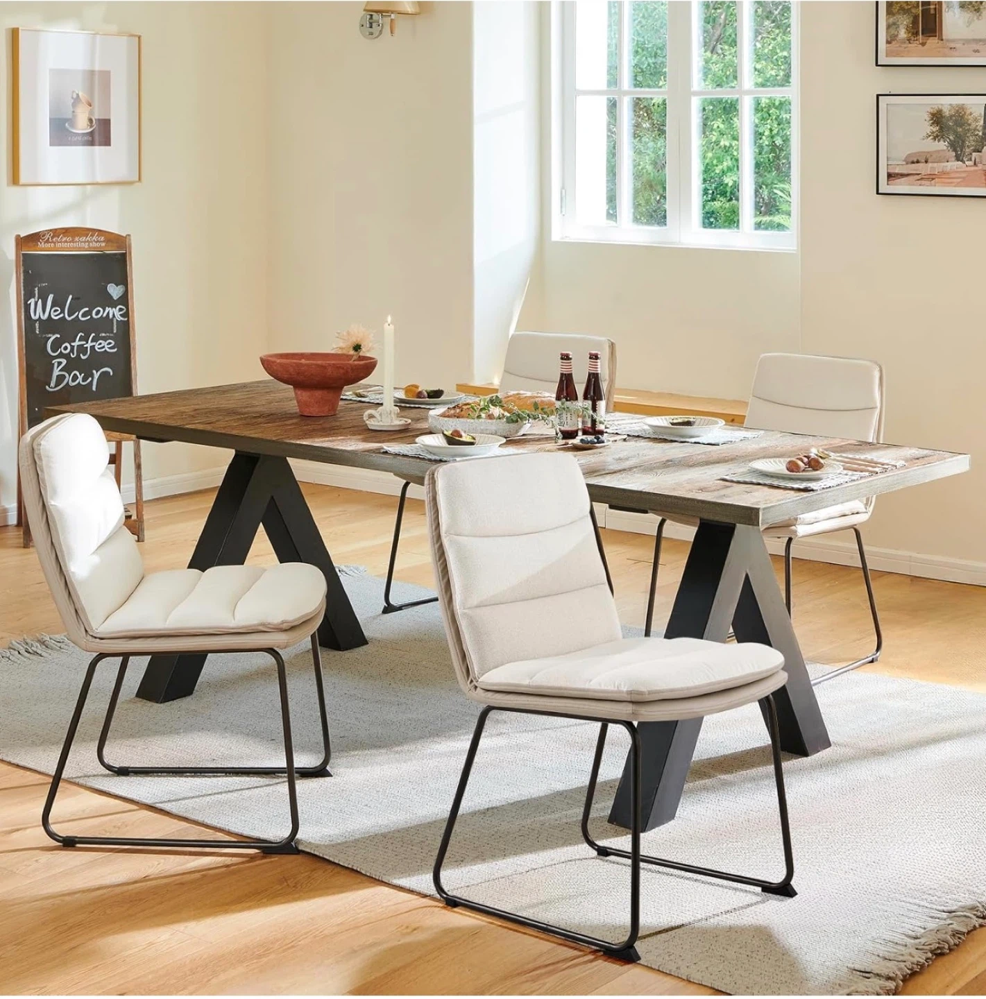 【High Quality & Durable】The high-quality materials used in the construction of kitchen chairs ensure that they will stand up to daily use. The sturdy metal frame of dining chairs ensures stability and support while you dine. You can relax and enjoy your meals without worrying about wobbly chairs. The padded fabric seats of living room chairs provide a comfortable place to sit and enjoy a meal with family and friends. You'll never want to get up from these cozy chairs.