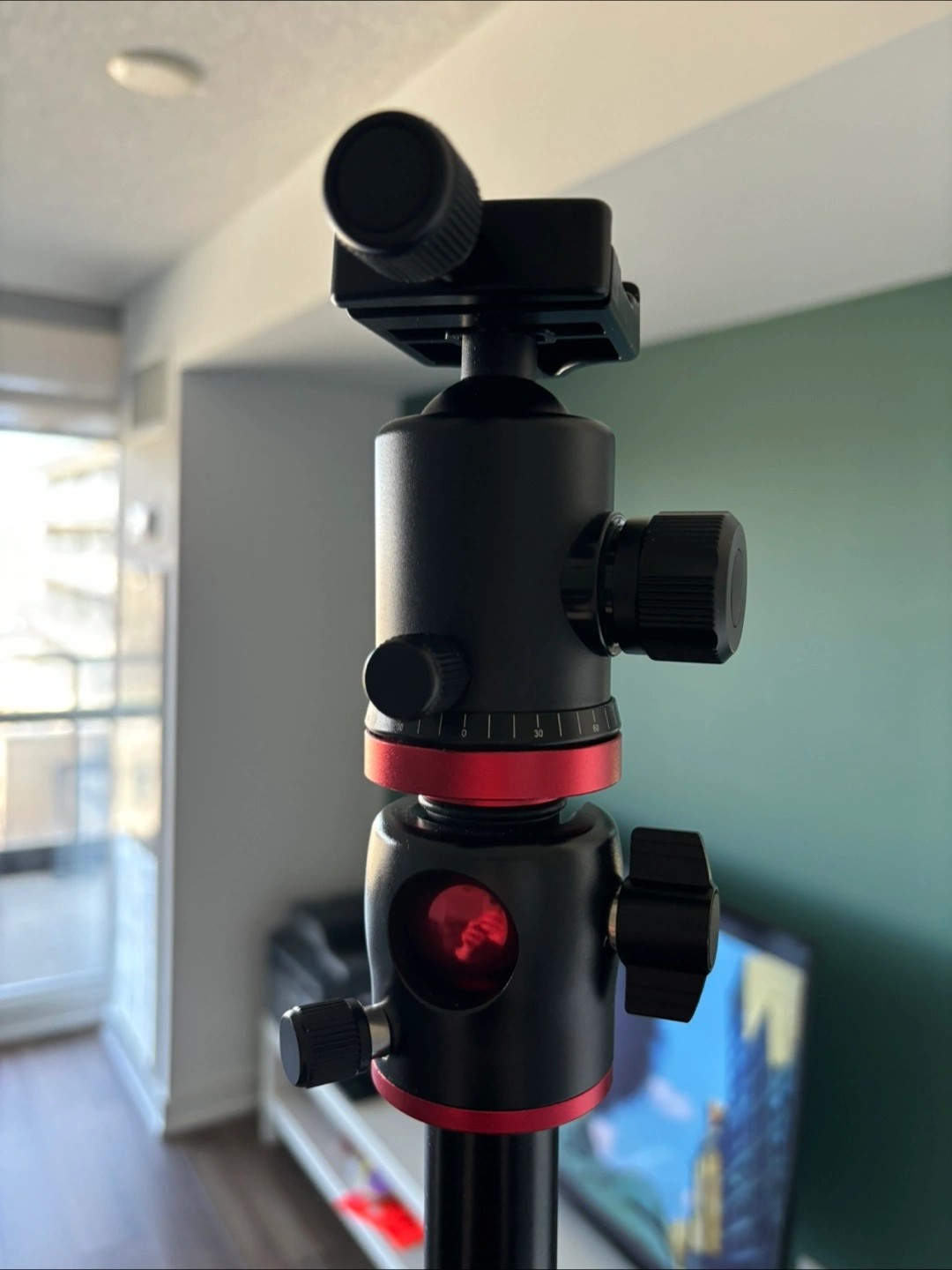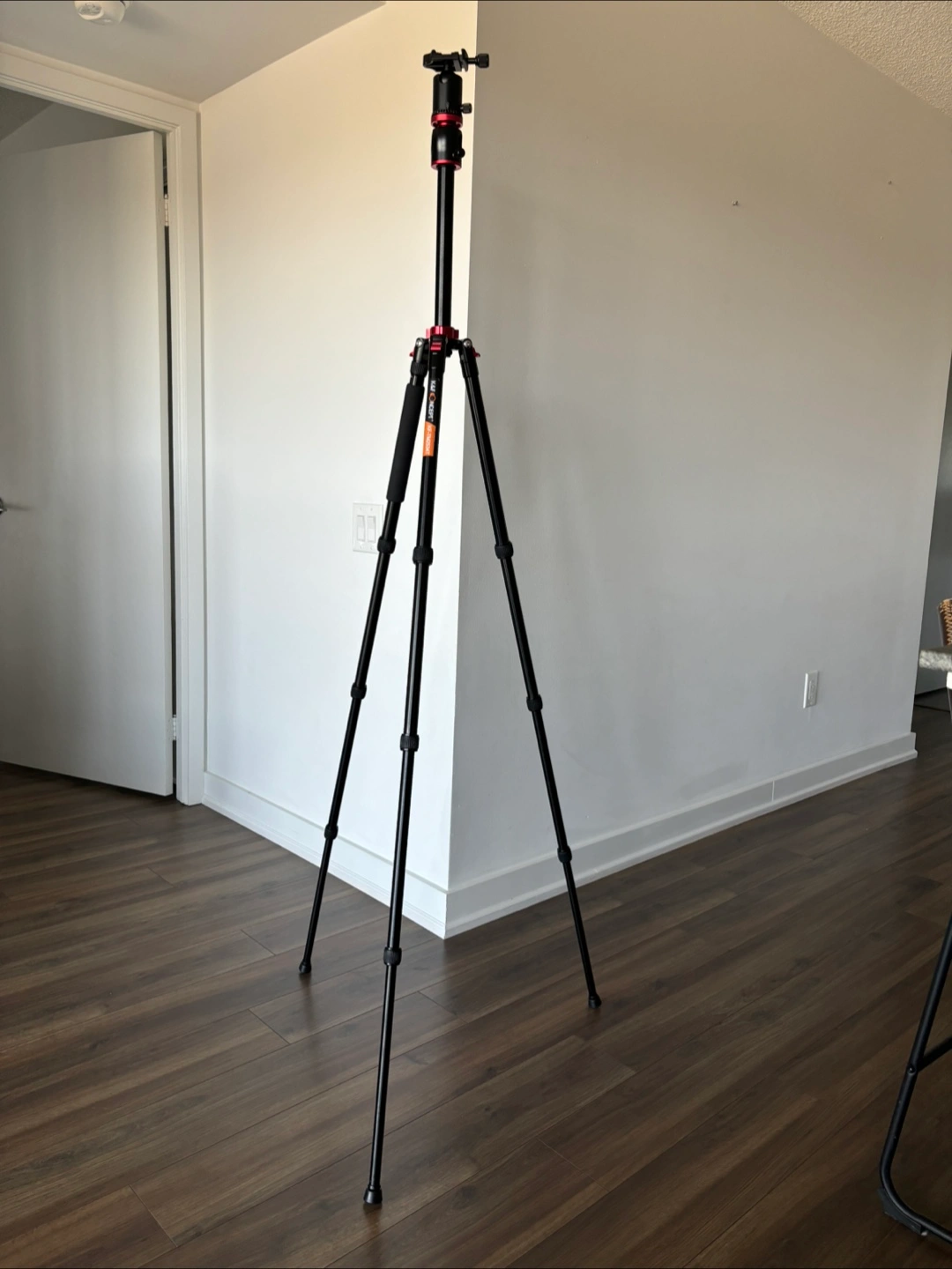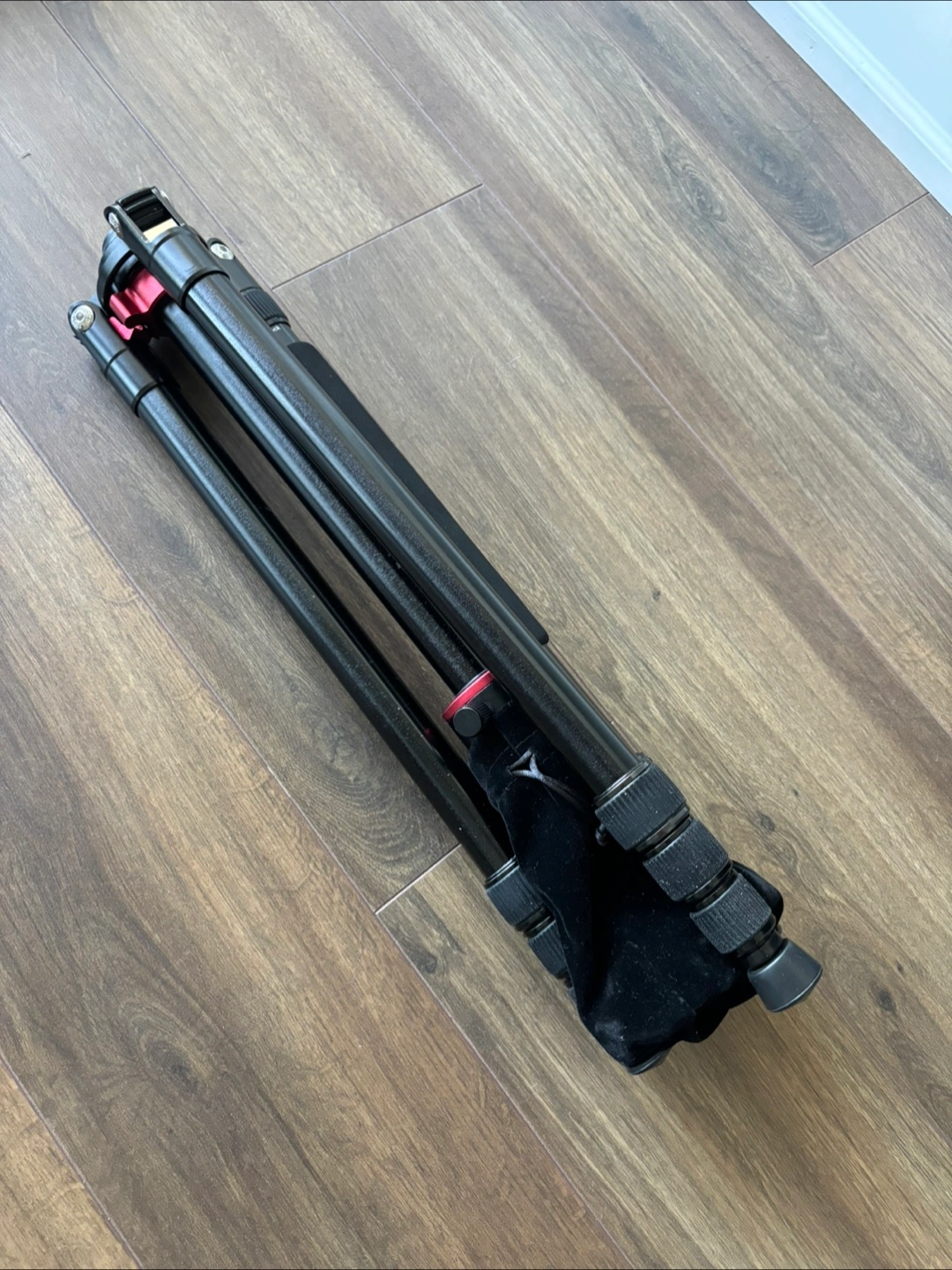 Lightweight tripod, great for travel. Includes carrying case. Durable construction. Adjustable height. With horizontal arm Ball head included. 10 Kg / 22 lbs max load capacity. Becomes also monopod up to 75” / 193cm extendable.