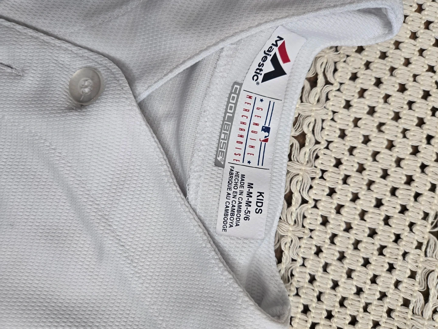 White Majestic Toronto Blue Jays kids' baseball jersey. Features the Blue Jays logo and lettering. Size M (kids M-M-5/6).