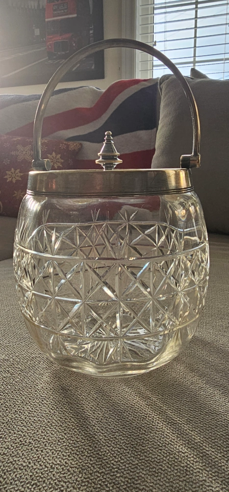 Vintage Crystal Biscuit Jar with Silver plated Lid