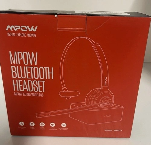 New in original box, box is open! Bluetooth 5.0 for stable, fast wireless connection. Noise-Cancelling Microphone reduces background noise for clear calls. Long Battery Life – up to 17 hours talk time (varies by use). Lightweight & Comfortable with adjustable headband. 270° Rotatable Boom Mic for left or right ear use. Multipoint Pairing – connect to two devices at once. Easy Controls for volume, mute, and call management. What’s Included: Mpow BH231A Bluetooth Headset, Charging Cable, User Manual, Charging Base. Condition: Open Box – Like New: Fully tested, works perfectly. Compatibility: Smartphones (iPhone / Android), Tablets, Laptops & PCs with Bluetooth, VoIP apps (Zoom, Teams, Skype, WhatsApp, etc.).