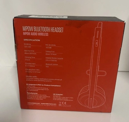 New in original box, box is open! Bluetooth 5.0 for stable, fast wireless connection. Noise-Cancelling Microphone reduces background noise for clear calls. Long Battery Life – up to 17 hours talk time (varies by use). Lightweight & Comfortable with adjustable headband. 270° Rotatable Boom Mic for left or right ear use. Multipoint Pairing – connect to two devices at once. Easy Controls for volume, mute, and call management. What’s Included: Mpow BH231A Bluetooth Headset, Charging Cable, User Manual, Charging Base. Condition: Open Box – Like New: Fully tested, works perfectly. Compatibility: Smartphones (iPhone / Android), Tablets, Laptops & PCs with Bluetooth, VoIP apps (Zoom, Teams, Skype, WhatsApp, etc.).