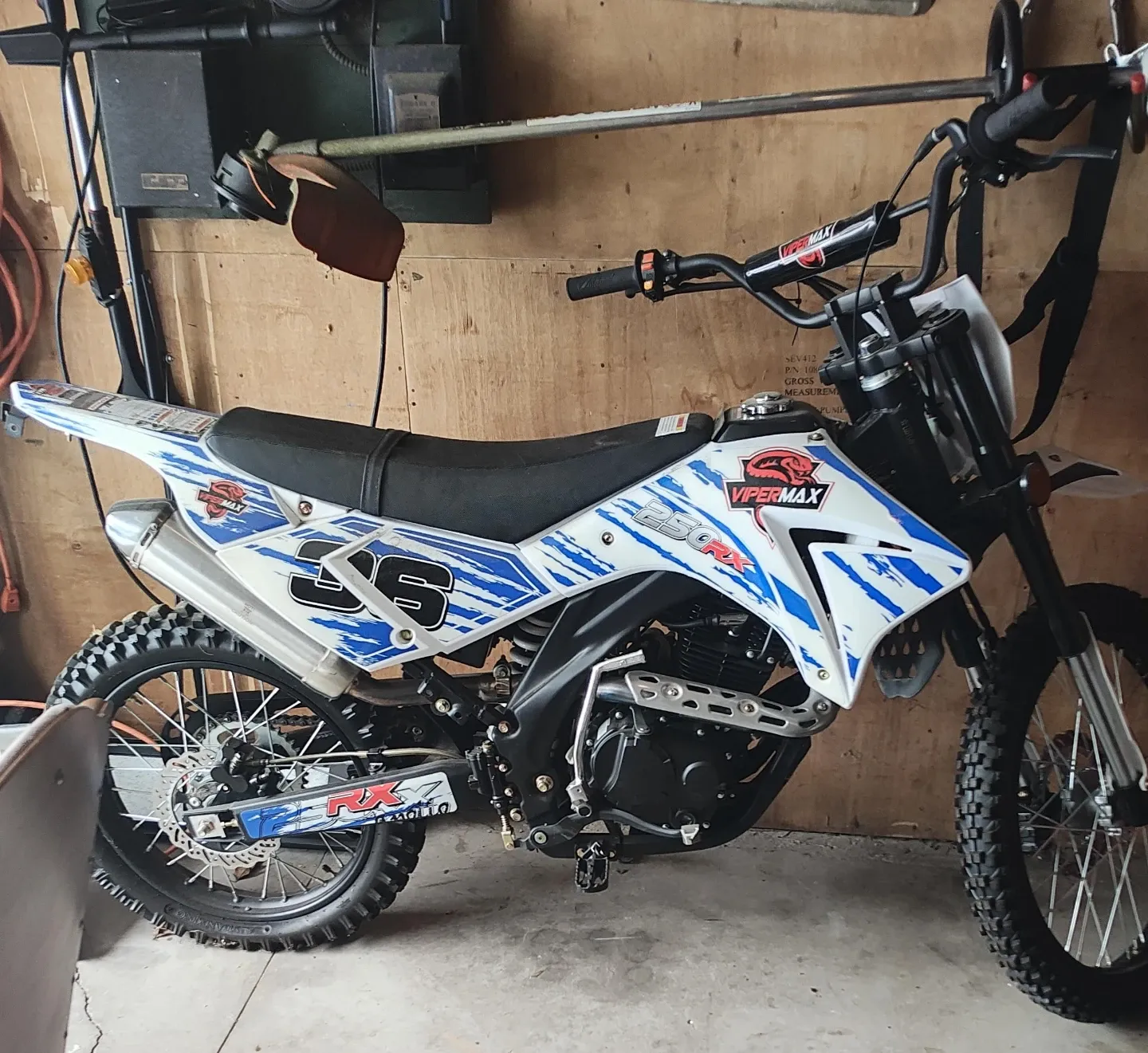 Buy & SellVipermax Dirt BikeVipermax Dirt Bike$1,125White and blue Vipermax dirt bike. It's a trail bike. Ready for off-road fun!ConditionGoodWHERE TO MEETCheck LocationView MapSELLERverifiedLori smithDowntown Brampton681 review6 chats·4 favorites·94 viewsSEND CHAT TO SELLERHi Lori smith! I’m interested in your listing.Hi Lori smith! I’m interested in your listing.Get the Karrot app to chatSign In to chat