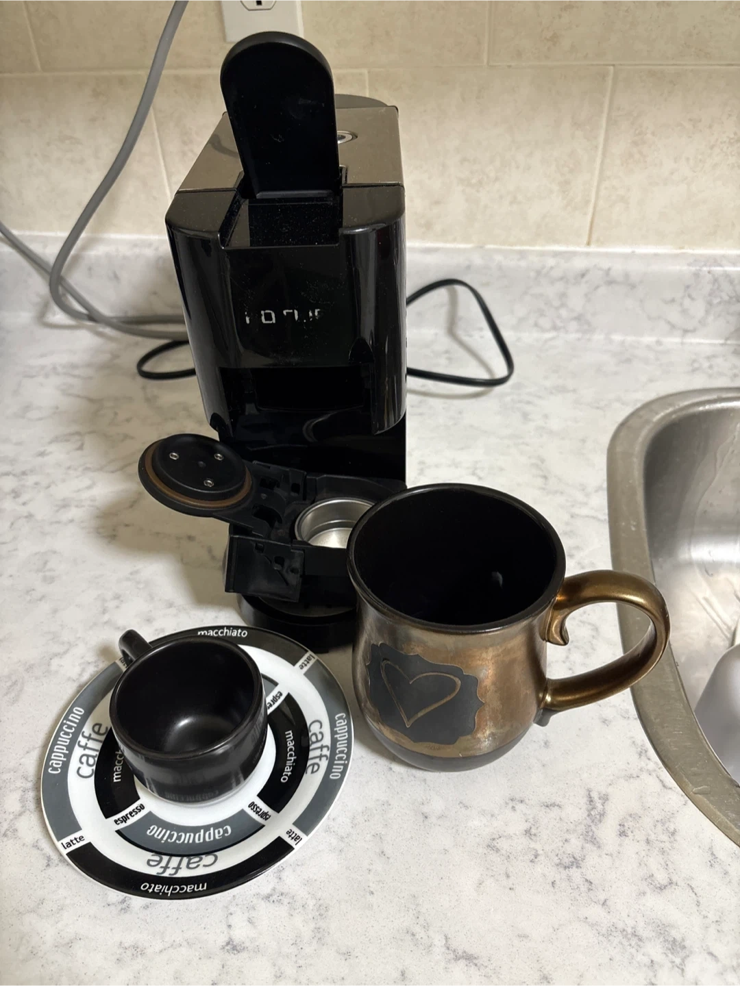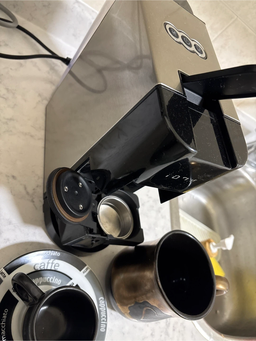 This iCoffee machine brews espresso and other coffee drinks. (Works like a nesspresso machine) good for all the pods coffee) It has buttons for 6oz and 10oz servings. It's great for making your morning coffee. + 2 free cups espresso size and big