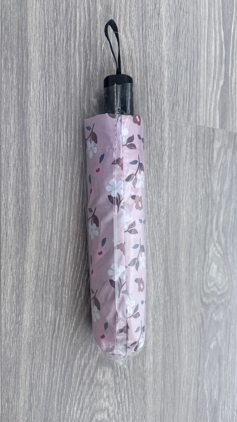 This compact umbrella features a pretty floral print. It's designed for easy portability and offers protection from the rain. Comes with a protective sleeve. The lightweight design makes it a handy accessory for damp weather!