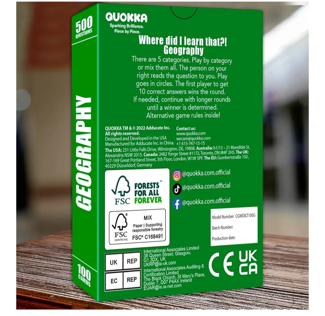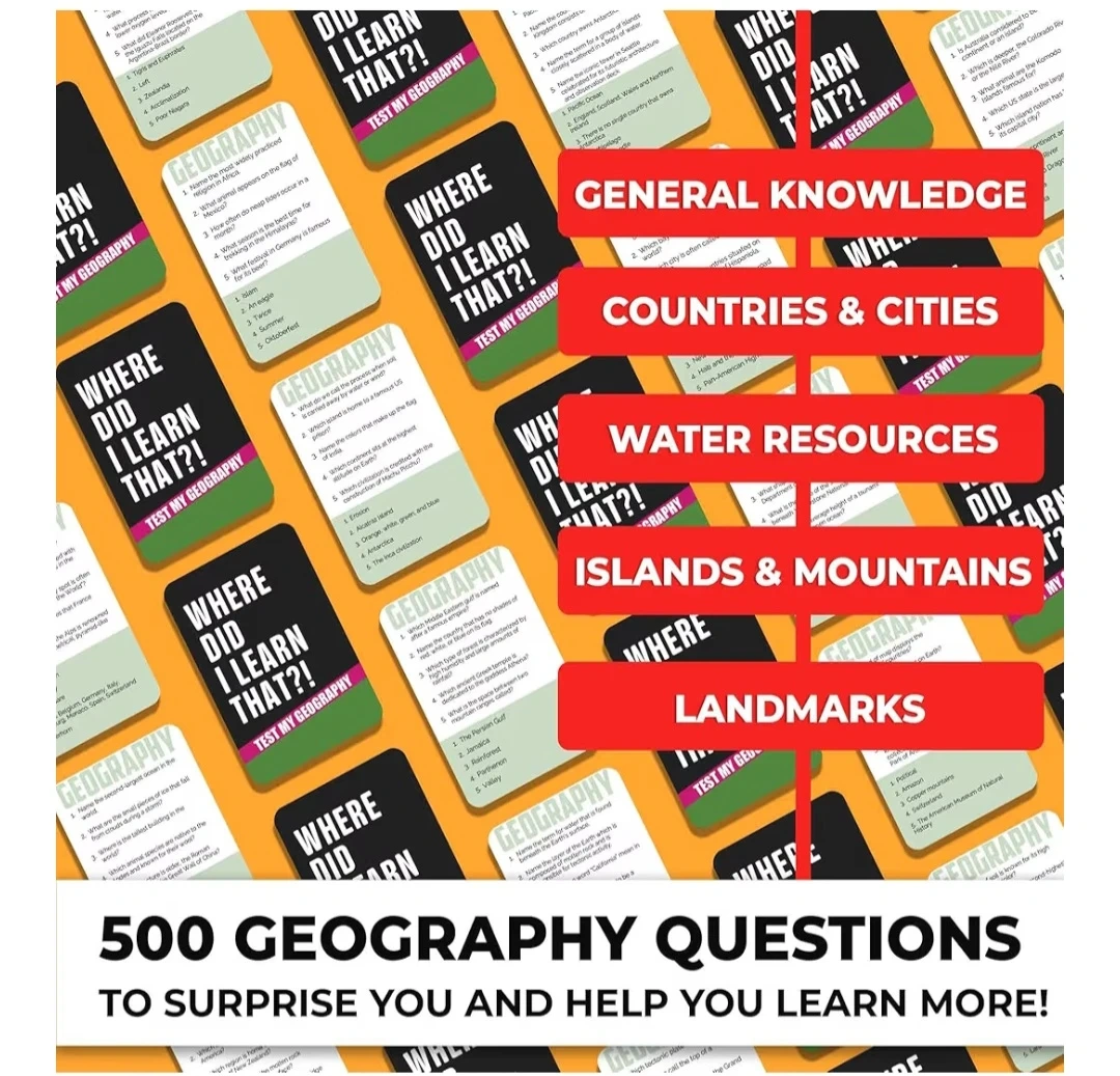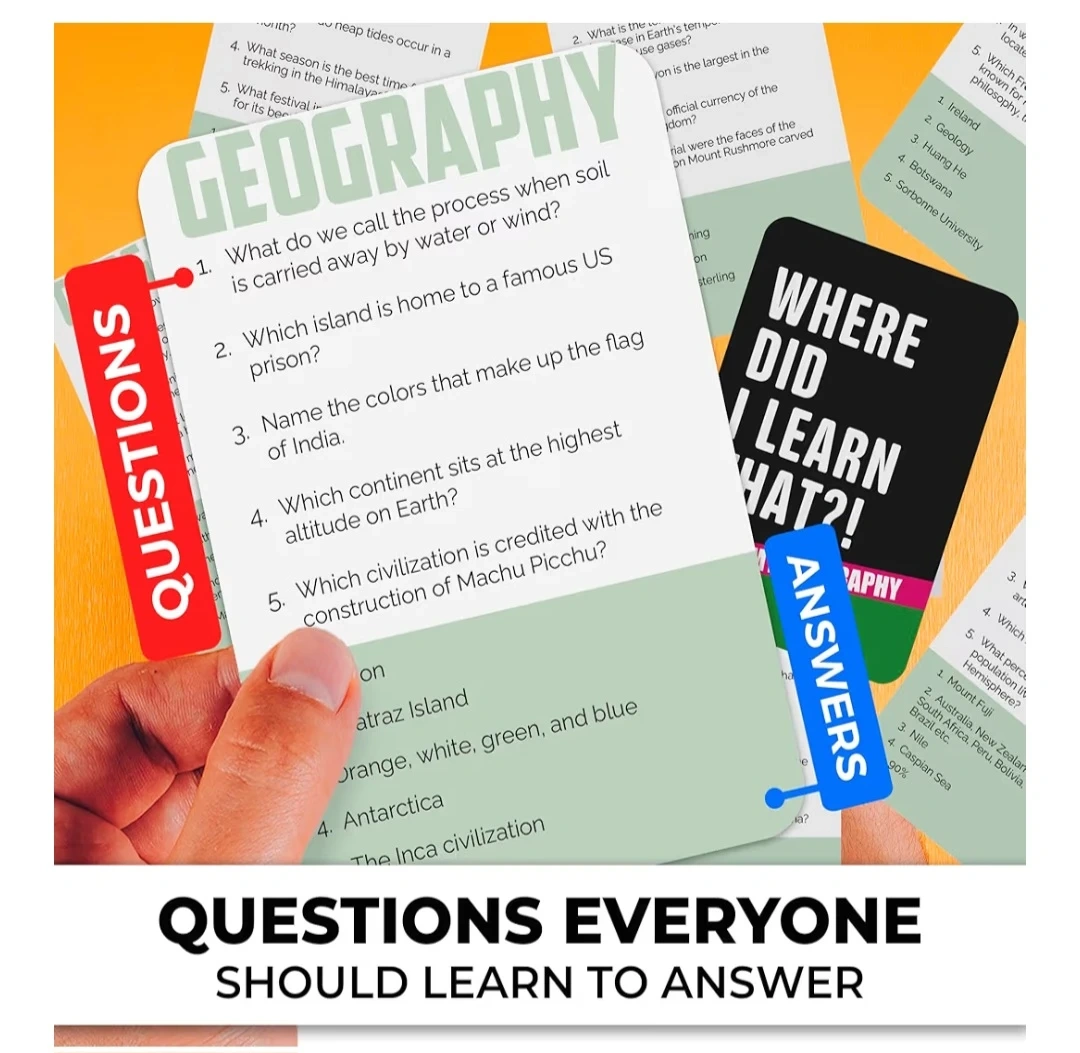 Board Game for Kids Ages 5-9 - Family Card Board Game for Kids 8-12 by Quokka - 500 Trivia Questions Cards in Geography - Learning and Educational Trivia Games - Get to Know It and Family Games Night