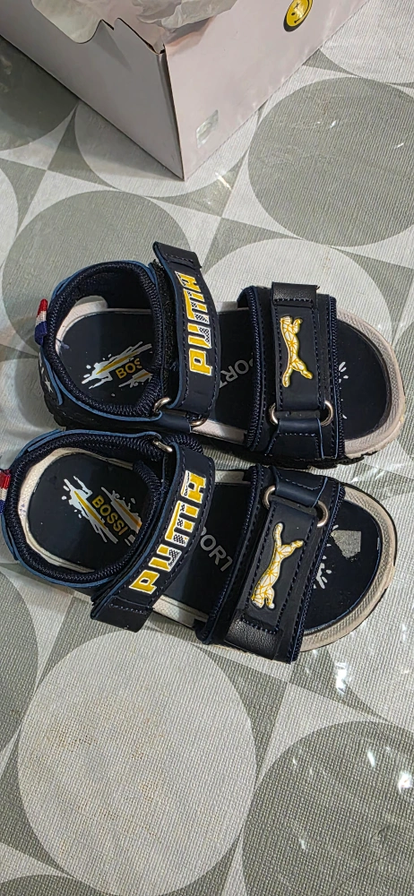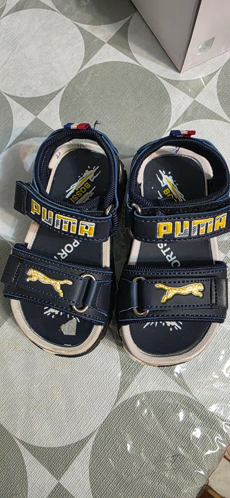 Cute Puma sandals for kids! They feature a navy blue and yellow colour scheme with the Puma logo. They are in good condition and ready for a new home. Great for summer outings!