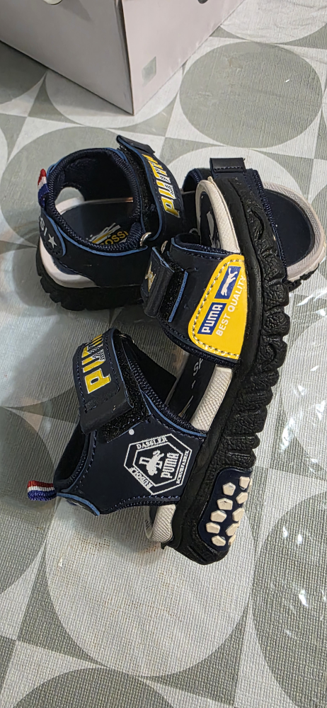Cute Puma sandals for kids! They feature a navy blue and yellow colour scheme with the Puma logo. They are in good condition and ready for a new home. Great for summer outings!
