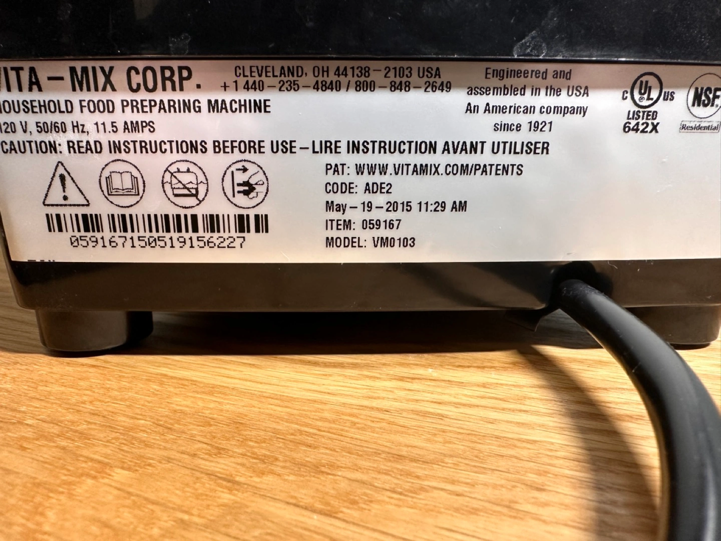 Please note that the blender is out of warranty (only 5 years), but Vitamix still services this blender if required.