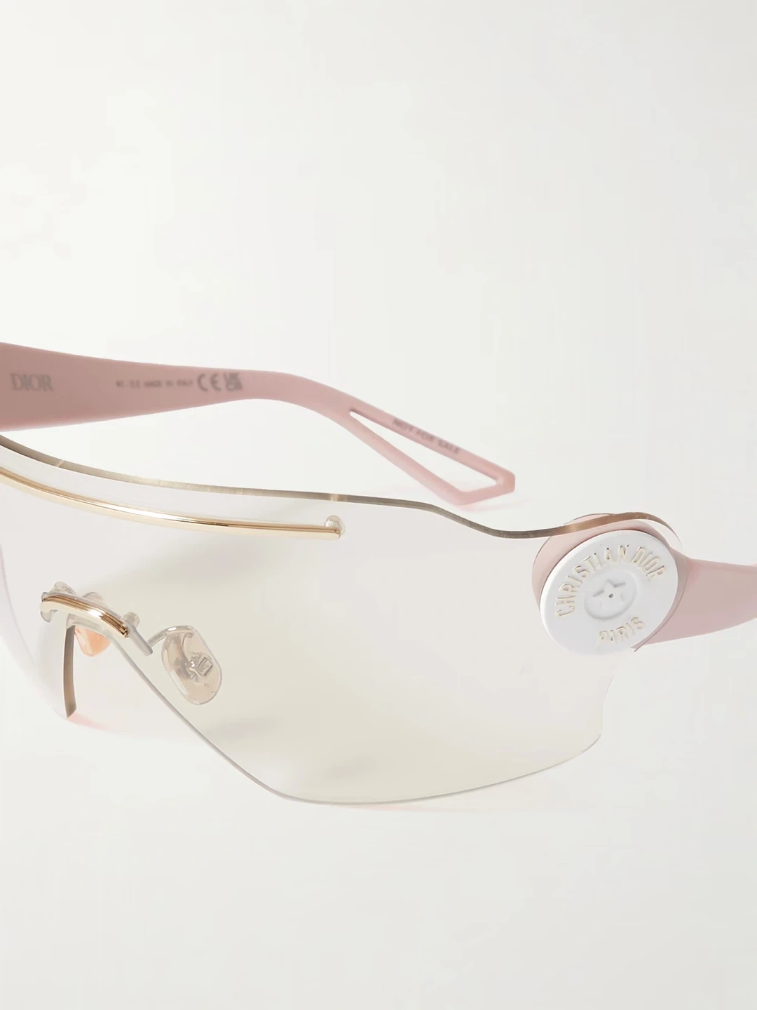 Description : Logo sunglasses Rose gold metal details tinted lenses Adjustable metal nose pad