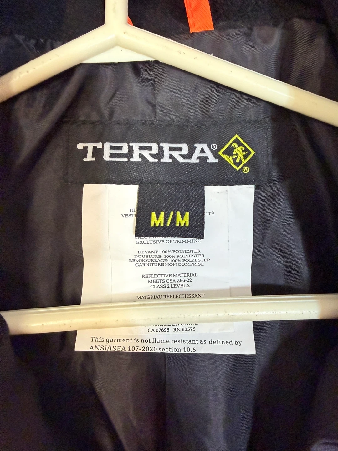 It's designed for visibility and warmth, The outer shell is 100% polyester with reflective material for enhanced safety.