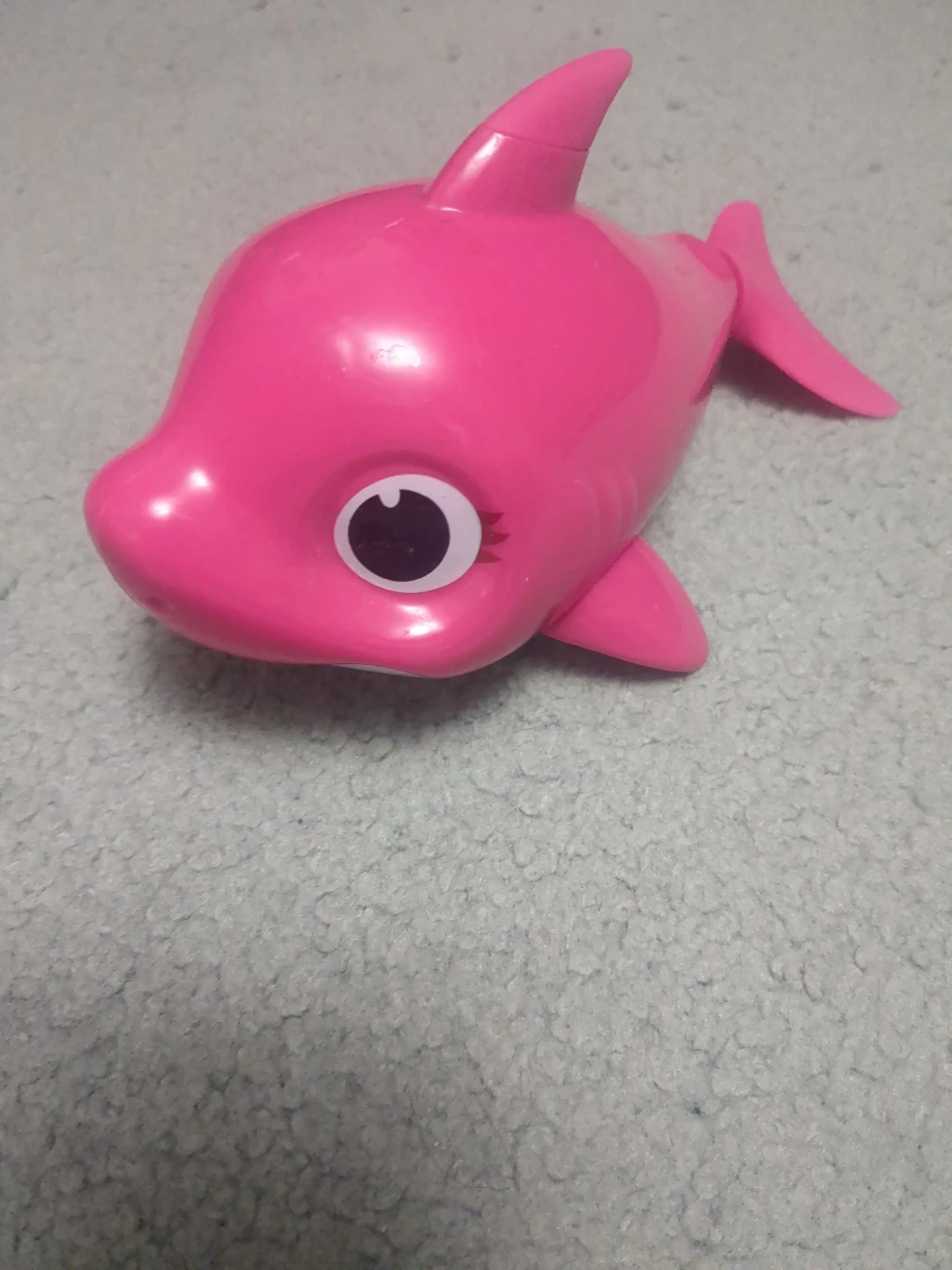 This pink shark is a fun bath toy for kids. It's made of durable plastic and designed to float. It's great for bath time entertainment!